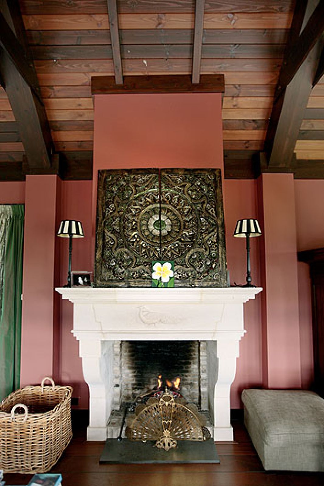 Z daleka wygląda jak typowa wiejska posiadłość. Solidna architektura, za domem pole kukurydzy, przed – równo przystrzyżony trawnik, miejsce na grill, wielki rodzinny stół pod pergolą. Już się cieszę na spotkanie z antykami, tkaninami z epoki… Tymczasem niespodzianka. Przy wejściu buddyjski gong – by goście mogli zapowiedzieć swoje przybycie. Na przeciwnej ścianie portrety japońskich cesarzy. A na stole, przy którym siadamy, zamiast porcelanowego serwisu arabska taca z kolorowymi szklaneczkami. Okazuje się, że białe tradycyjne mury kryją pikantne wnętrze.