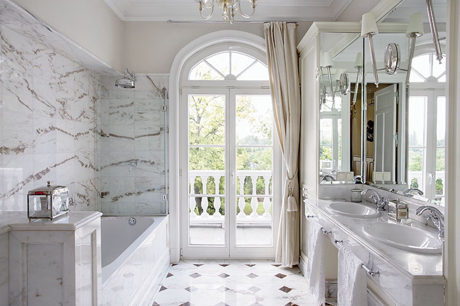 Pojawiły się więc naturalne, szlachetne materiały, sztukaterie, francuskie parkiety, „boazerie” ze szlifowanego marmuru, przedwojenne wzory posadzek. Wszystko proste, bez zbędnych ozdobników. Architektka inspirowała się zdjęciami wnętrz z epoki oraz współczesnymi londyńskimi domami.