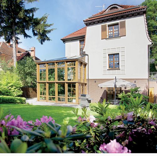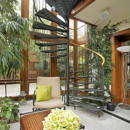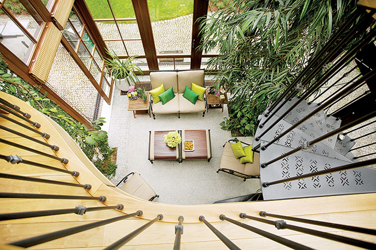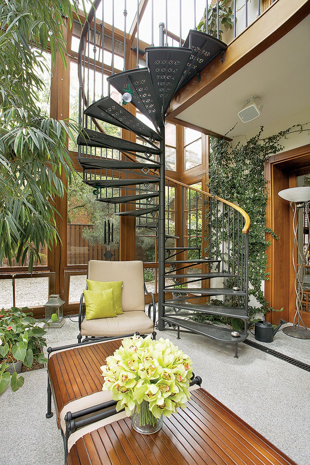 A wyjście z jadalni do ogrodu? Za jednym zamachem udało się spełnić życzenie Małgosi i stworzyć najatrakcyjniejszą część domu – oranżerię. Stara poniemiecka willa ma piwnice na poziomie ziemi, część dzienna z salonem, kuchnią i jadalnią znajduje się na wysokości pierwszego piętra. Architekt tę wysoką część dzienną przedłużył antresolą, z której żeliwne kręcone schody prowadzą do oranżerii, a stamtąd dalej, na zewnątrz. Ogród zimowy szybko okazał się największym wabikiem. Jest tu tak nastrojowo, że wszyscy znajomi chcą siedzieć właśnie w oranżerii. Nawet zimą, opatuleni kocami, obłożeni wygodnymi poduchami, z filiżanką pysznego, pachnącego cappuccino lub pucharkiem aromatycznego grzańca.