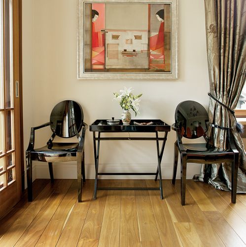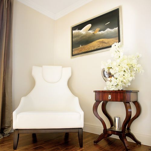 Małgosia lubi art déco, ale jeszcze bardziej eklektyzm. – Art déco jest zbyt geometryczne, za mało przytulne – uważa. – Za to dużo w nim wschodnich inspiracji. To właśnie dlatego ten styl tak bardzo jej się spodobał. Zaczęła zbierać tace, figurki, komody, no i obrazy Sylwii Szafert, namalowane specjalnie do jej domu.
