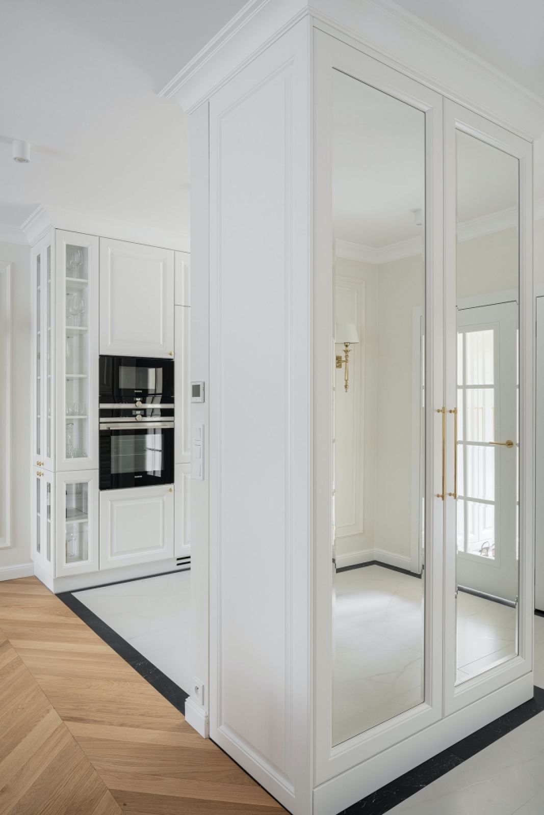 Zobacz też: Szykowny azyl – elegancki i kobiecy apartament w stylu modern classic z tapetą na suficie