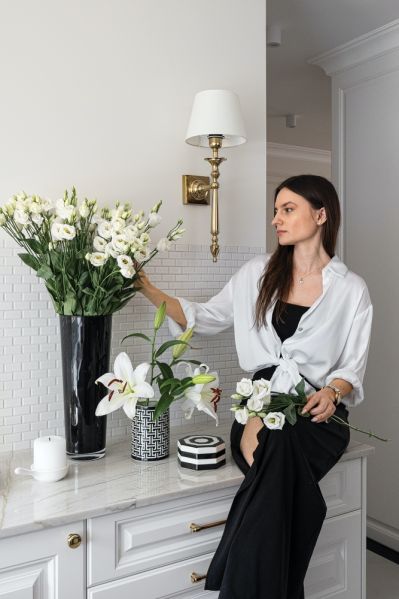 Sylwia specjalizuje się w projektach szytych na miarę – cechuje je ponadczasowa elegancja, ciepło i wyrafinowany detal. Jej interpretacje stylu modern classic, gdzie klasyka spotyka się z nowoczesnością, podbiła serce Agnieszki, kiedy prowadziła swój casting na projektantów. Nie lubi „cukrowania i nadmiaru dekoracji”, preferuje kolory stonowane i barwy ziemi, do których Sylwia dorzuciła jeszcze (dla kontrastu) akcent czerni oraz najważniejszy element dla ocieplenia wnętrza, czyli drewnianą podłogę ułożoną w jodełkę francuską.