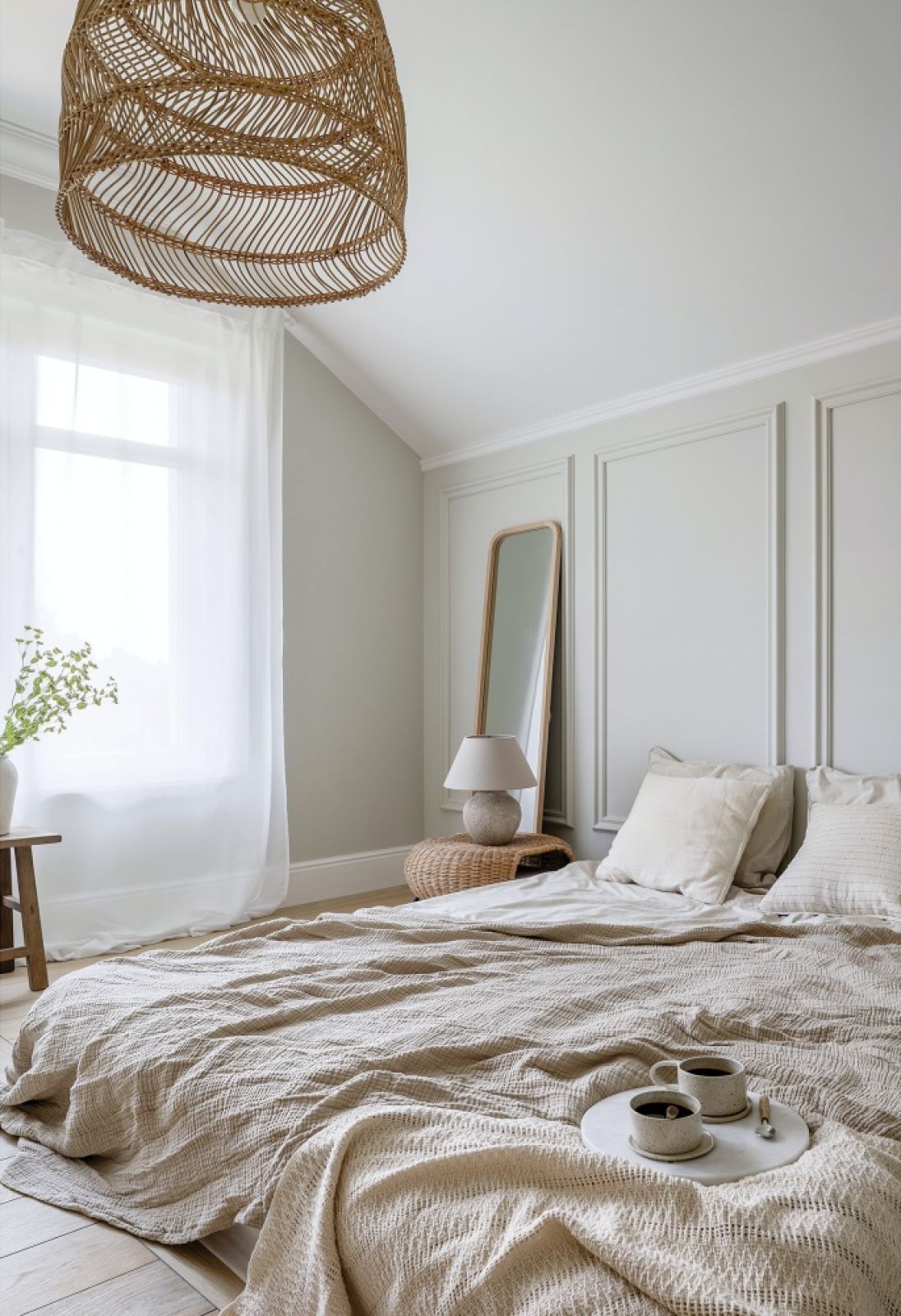 W odcieniach spokoju – aranżacja wnętrz w bieli, drewnie i wiklinie