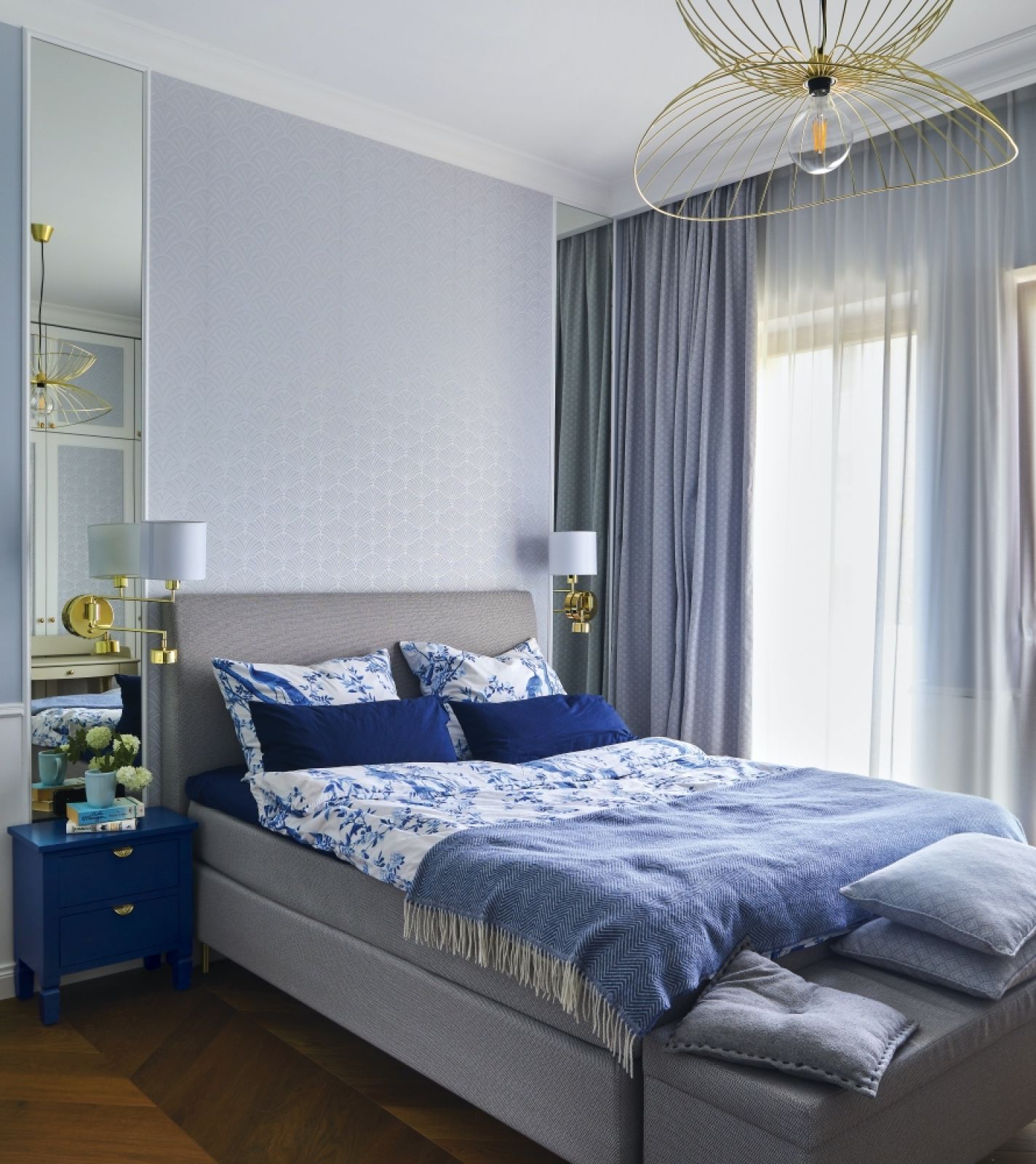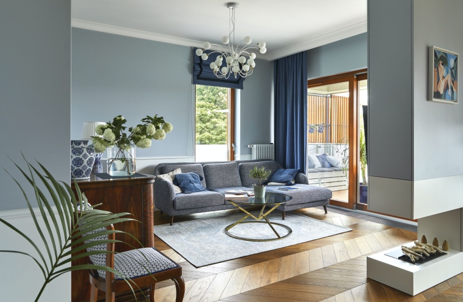 Niebieskie mieszkanie urządzone amerykańskimi detalami