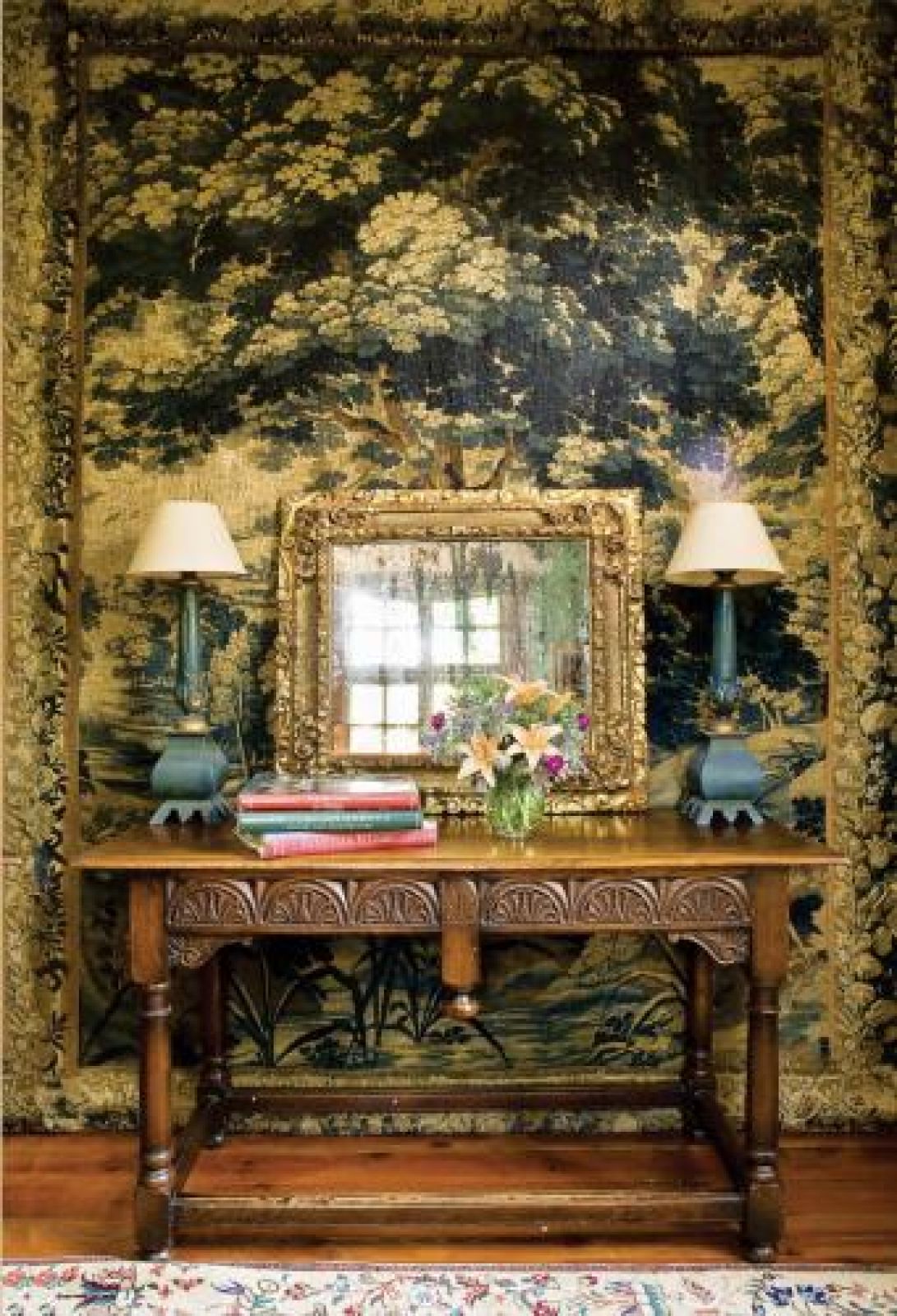 Z Nowego Jorku poza gustem i zawodowym szlifem przywieźli również kilka mebli, dywanów, tkanin i sztychów. Wyjątkowy jest w ich kolekcji XVII-wieczny włoski haft kupiony na amerykańskim pchlim targu, przedstawiający złożenie do grobu. Wisi na klatce schodowej. – Podobno ma jakieś niezwykłe, lecznicze właściwości. Powiedziała nam o tym zaprzyjaźniona, znana w Nowym Jorku, bioenergoterapeutka – wspomina gospodyni.