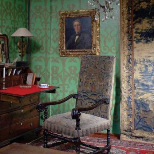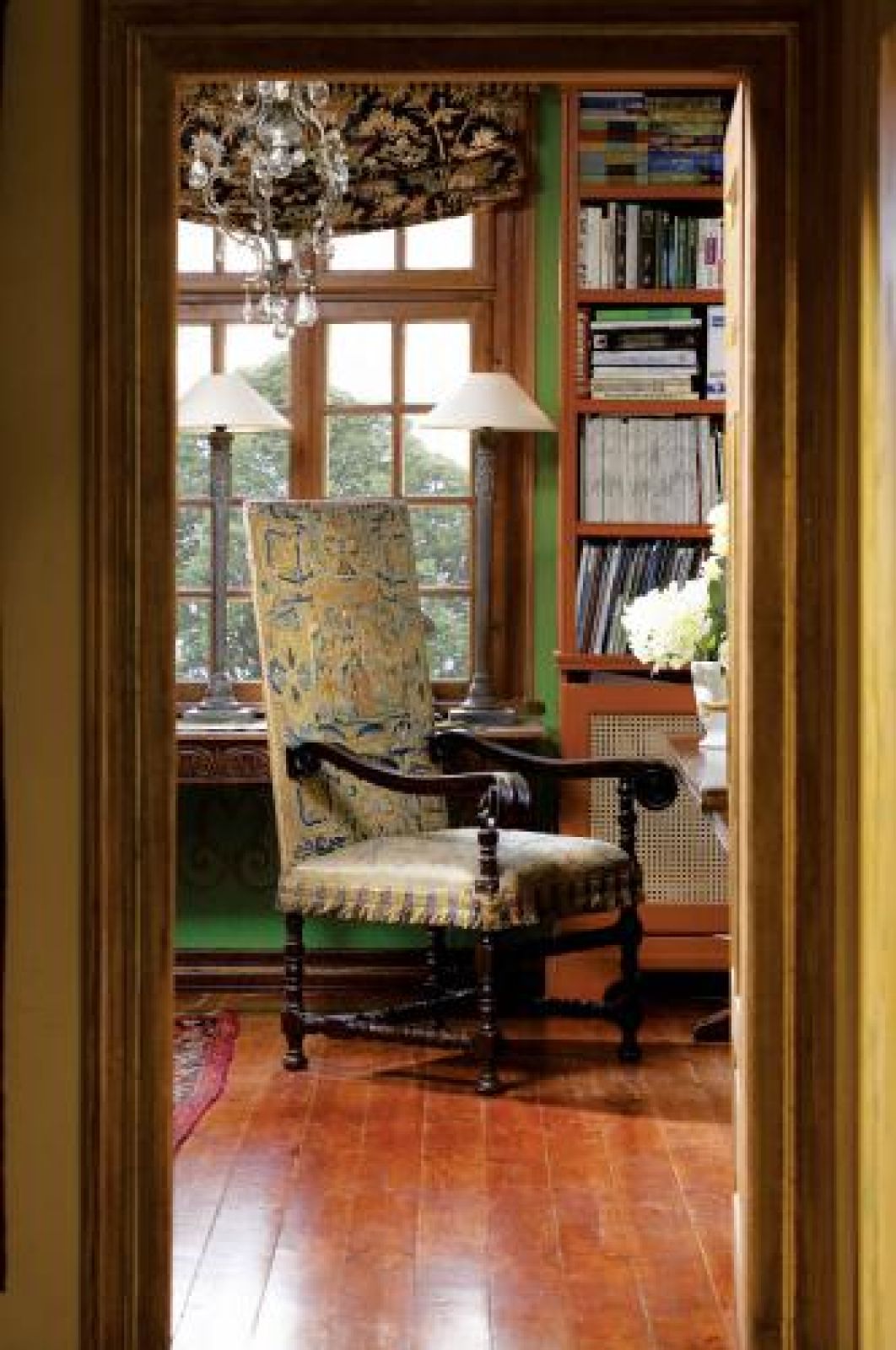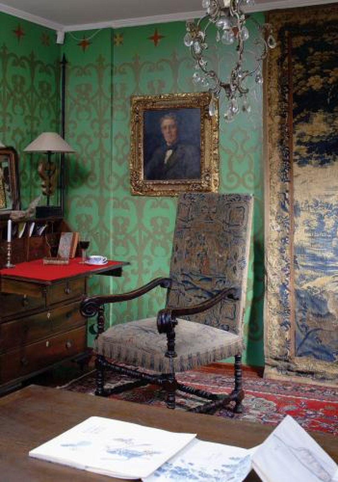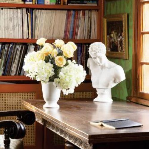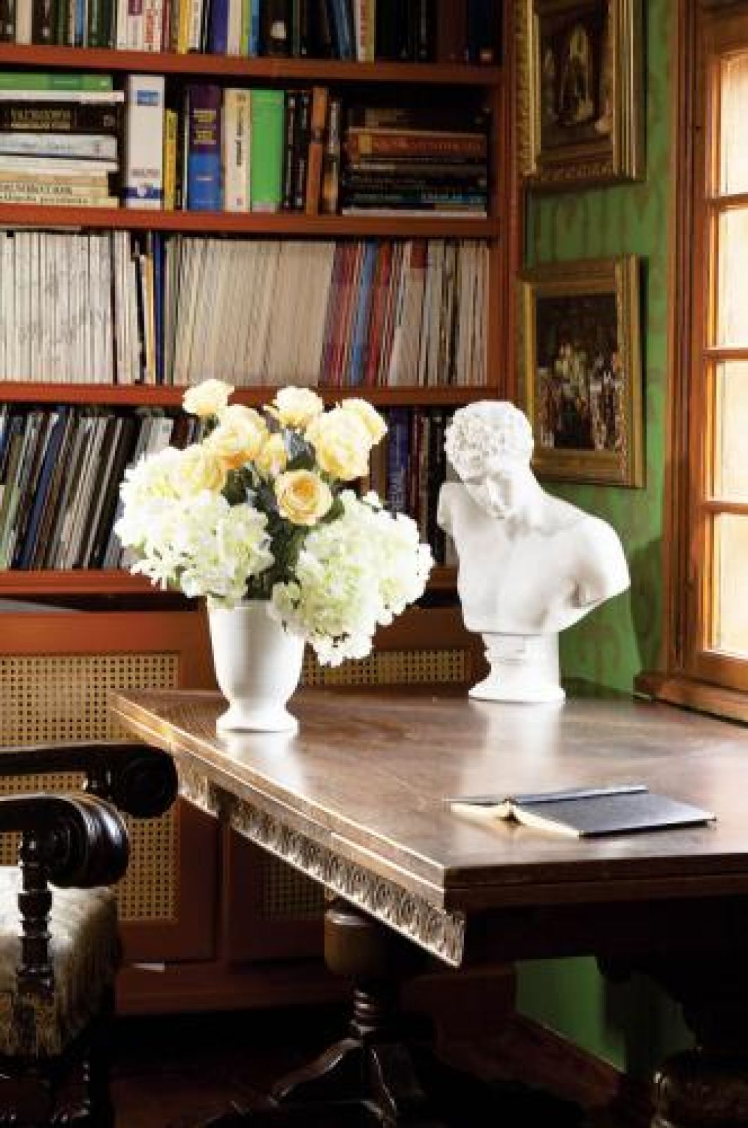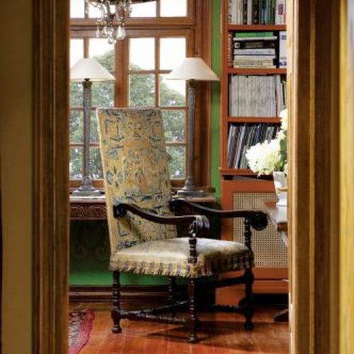 Ściany biblioteki ozdobione są renesansowym wzorem ściągniętym z księgi ornamentów. Do tego kolorystyka, przypominająca tę z krajów Południa, staranny dobór mebli, sprowadzanych z Londynu, Francji i z warszawskiego Koła. – Tak naprawdę można zestawić ze sobą wiele rzeczy, chodzi tylko o to, żeby połączenia były subtelne. Na przykład wezgłowie naszego łóżka w sypialni prawdopodobnie było kiedyś ramą lustra. A dziś zupełnie już nie zdradza swojego pochodzenia – tłumaczy gospodyni.