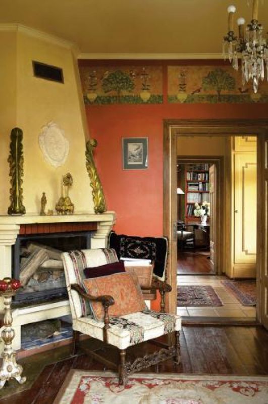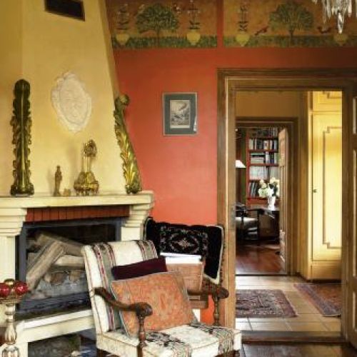 Nic więc dziwnego, że niemal w każdym pokoju unosi się duch renesansu albo przynajmniej jego ślad. Na ścianach w sypialni na piętrze namalowali otwarty na niebo namiot, który zdradza ich zamiłowanie do malarstwa iluzorycznego. Salon z kominkiem okala fryz. Jego wzór zaczerpnęli z florenckiego pałacu Davanzatti. Ewa podkreśla, że to ich najukochańszy.