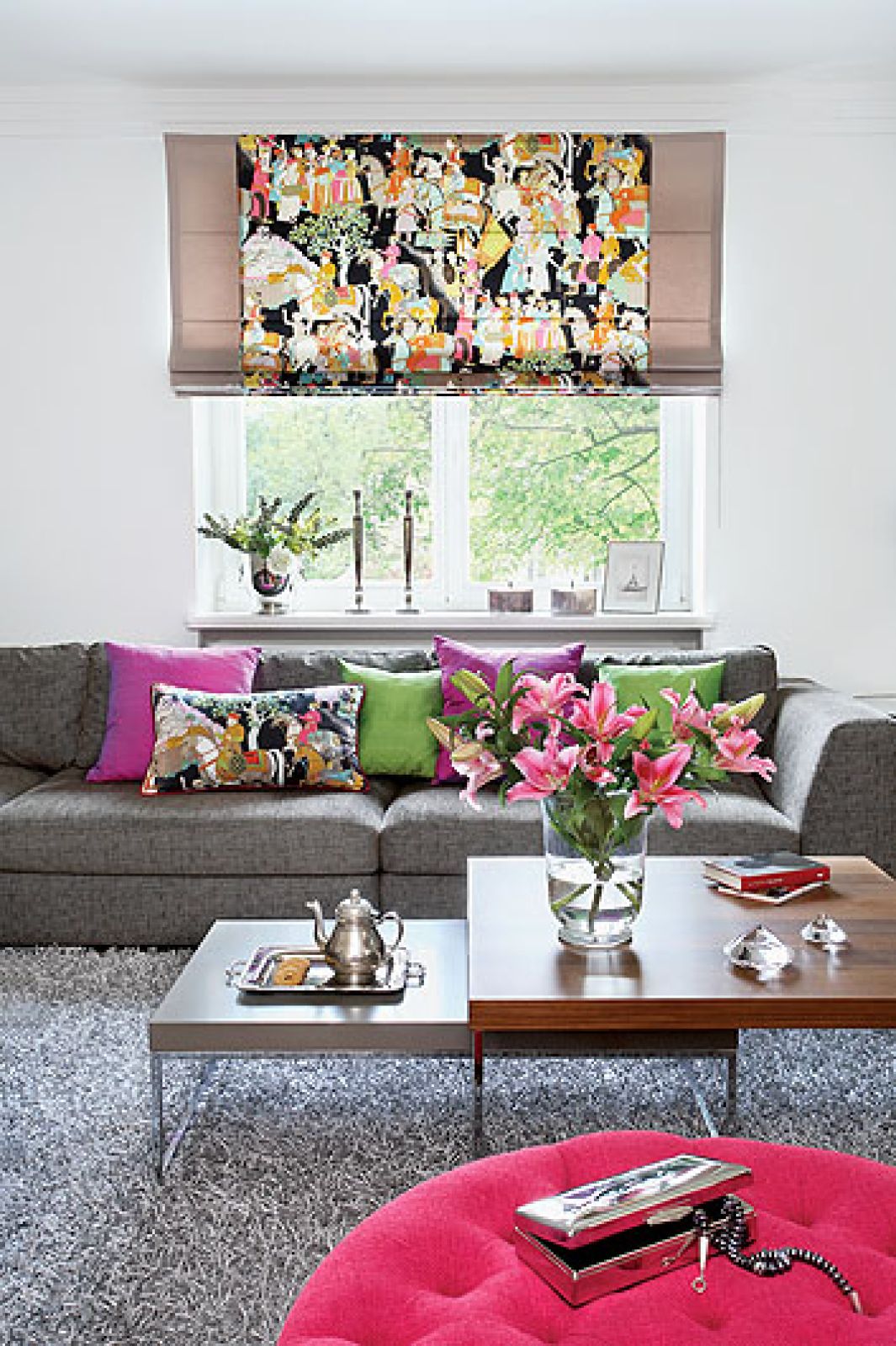 Wreszcie Marzena zaczęła wybierać tkaniny. Do eleganckich szarości i bieli zaproponowanych przez Annę dorzuciła trochę koloru: rolety z morskimi motywami, zdecydowane poduchy i wściekle różowy puf. – Znowu dojrzewam do zmian – zdradza. I wyciąga opasły wzornik z tkaninami Sandersona, gładząc ręką po przepięknej bawełnie w orientalne wzory. – Może teraz pójdę w tym kierunku?