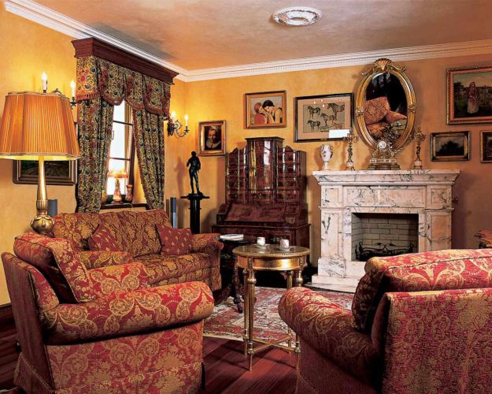 Jest taki moment podczas urządzania domu, kiedy ustawimy już meble, powiesimy obrazy... Niby wszystko gotowe, a jednak czegoś brakuje. Tkanin. To one nadają wnętrzu wyraz. Spróbujmy wyobrazić sobie ten salon bez zasłon i wzorzystych obić albo z gładkimi, jednobarwnymi tkaninami. Zmieniłby się nie do poznania. Wzorzyste materie, kolorowe, obfite, grube, suto marszczone sprawiają, że czujemy się tu jak opatuleni. Właściciel tego domu sprowadził te