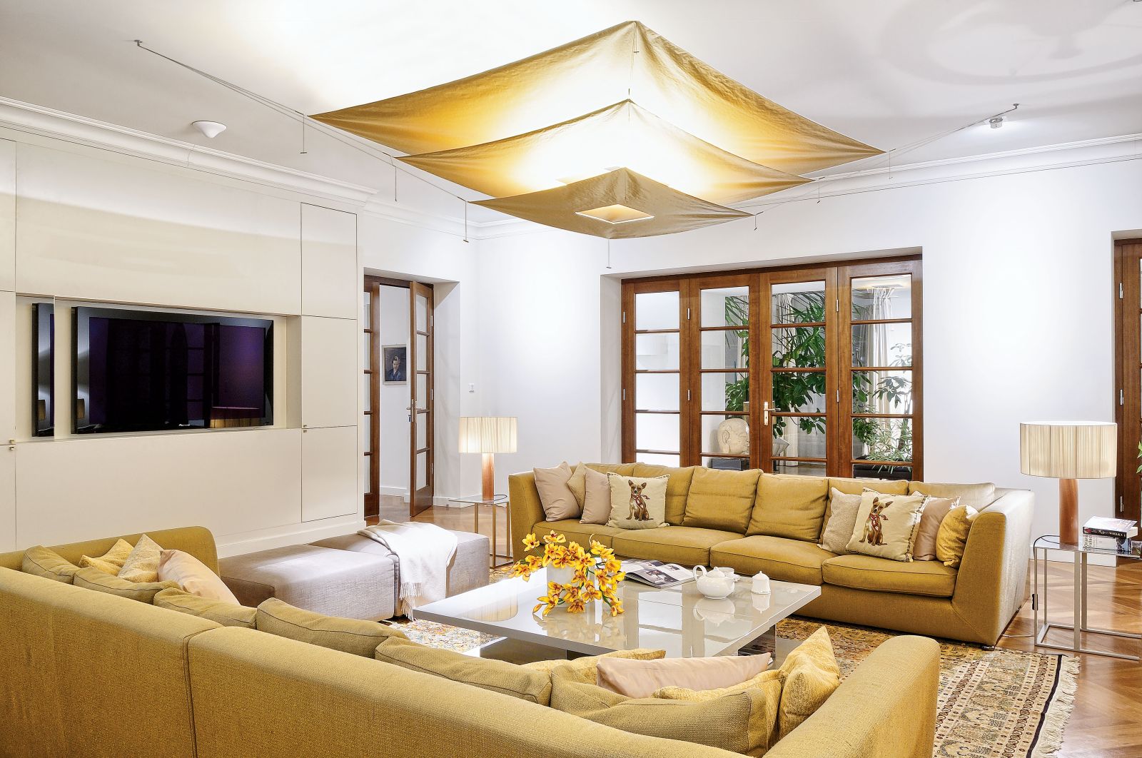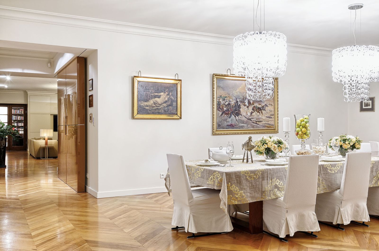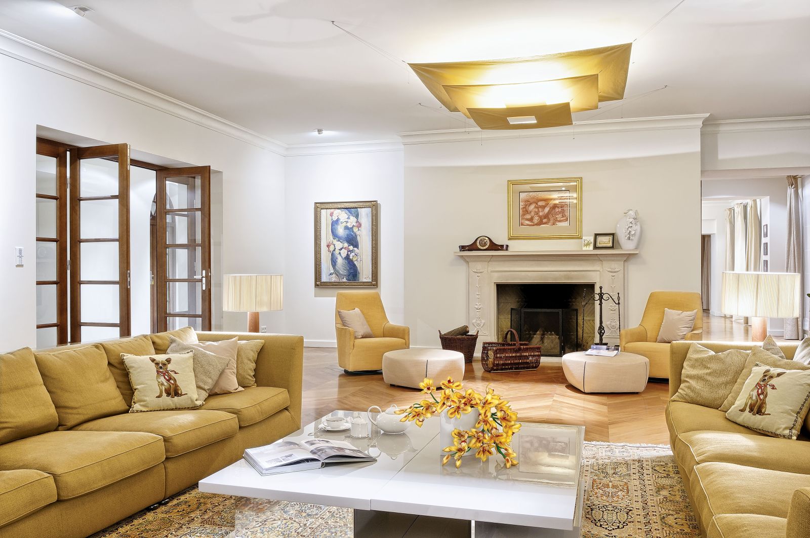 Prawie setka okien z prawdziwymi drewnianymi szprosami, dwa kilometry tkanin na zasłony, setka lamp i żyrandoli. Prawdziwy pałac, a jednak przytulny i kameralny.