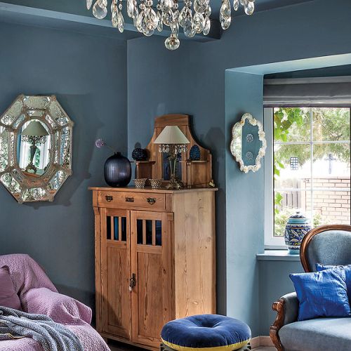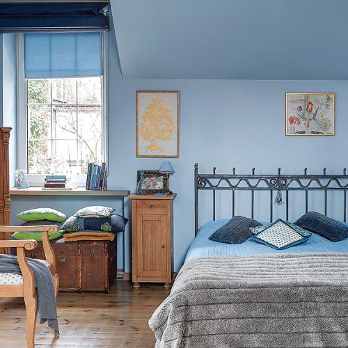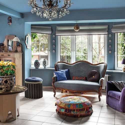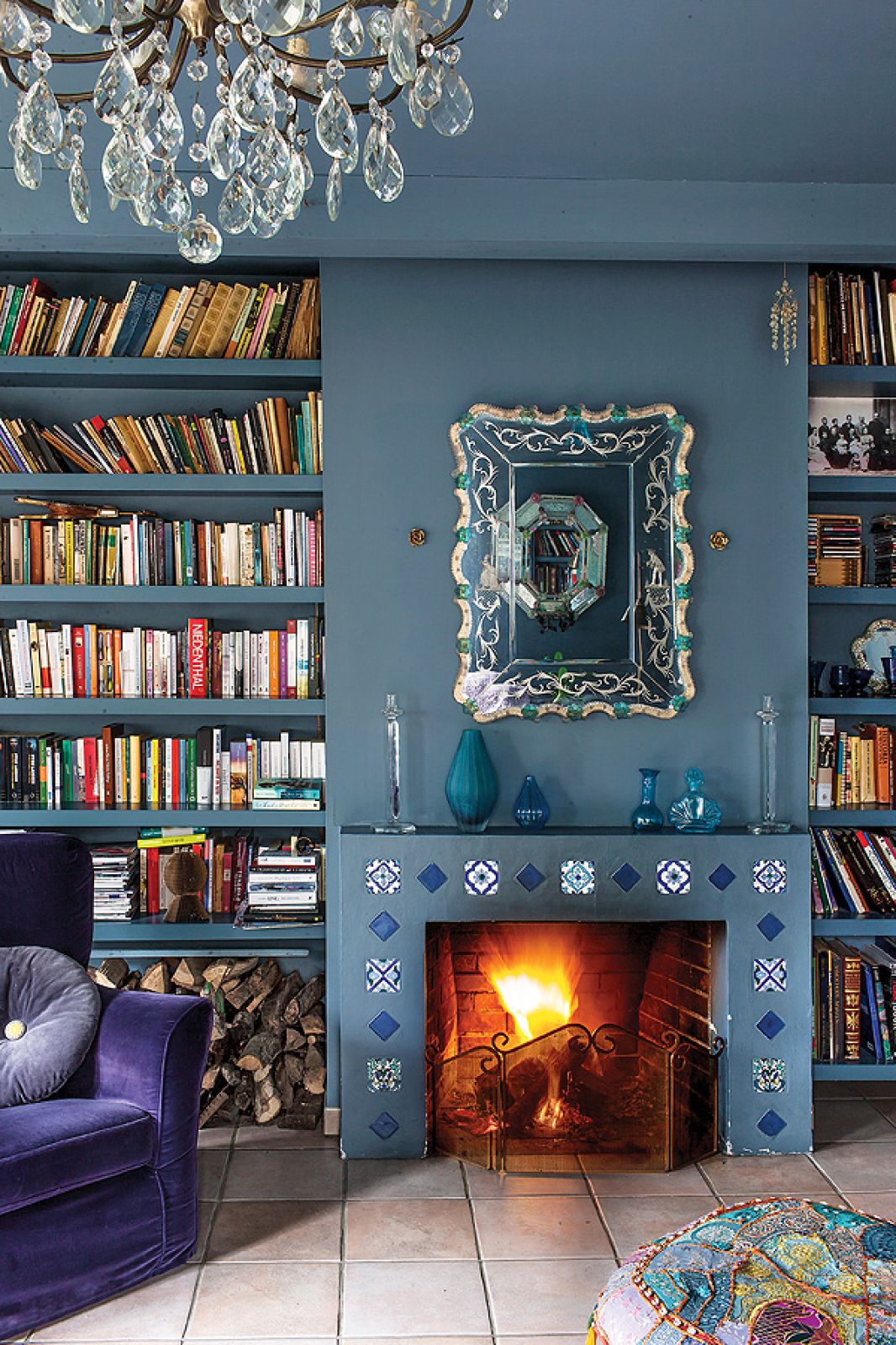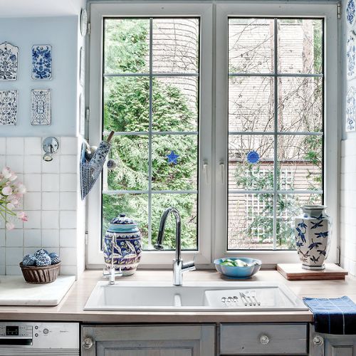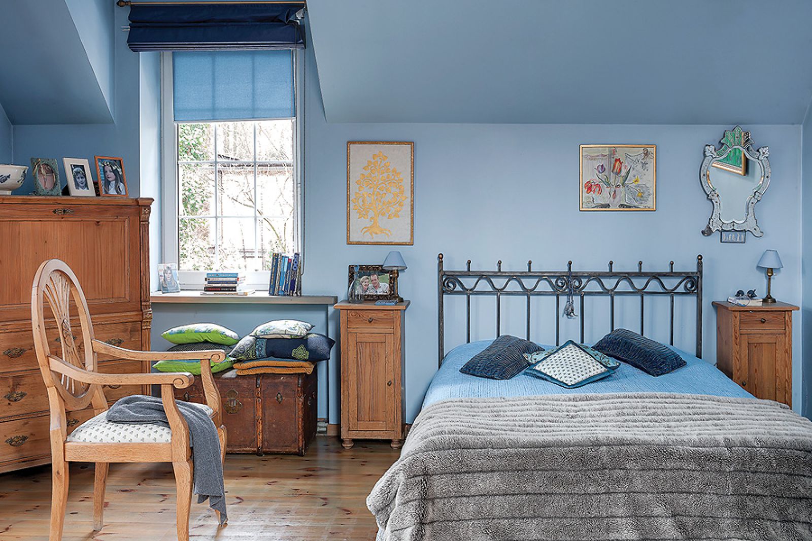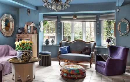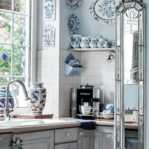 – Z myślą o tej kolekcji powstał nasz dom, oczywiście niebieski – tłumaczy Agnieszka. Pod kolor zrobili ściany i przecierane szafki w kuchni. Niebieski jest też kominek. – Kiedyś dostaliśmy od rodziców cztery kafle z Tunezji. Pomyśleliśmy, że ładnie wyglądałyby przy palenisku, ale było ich za mało. Tak długo szukaliśmy po całym Tunisie, aż wreszcie znaleźliśmy takie, które pasują – opowiada Agnieszka.