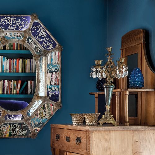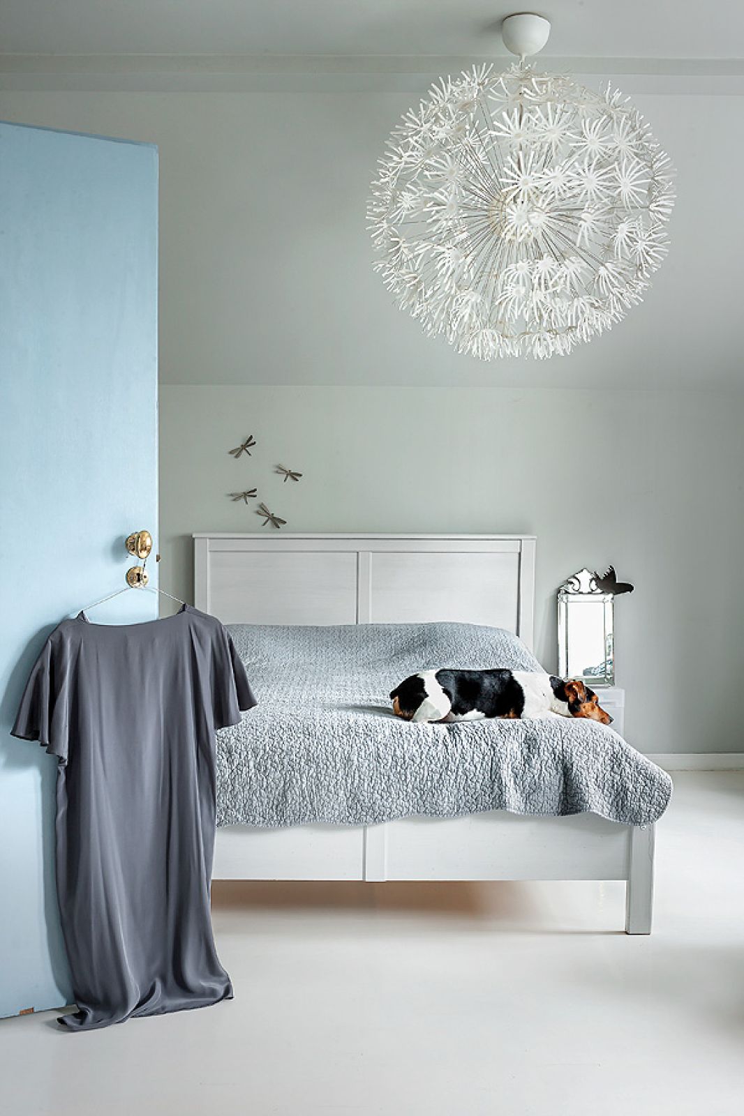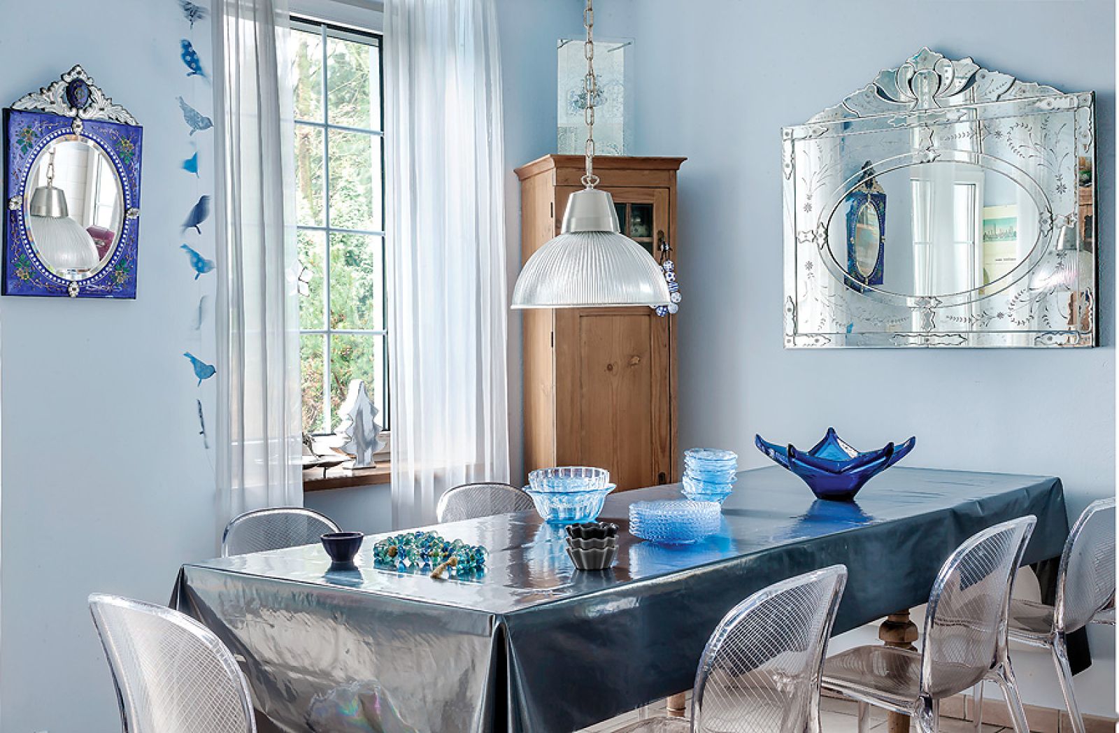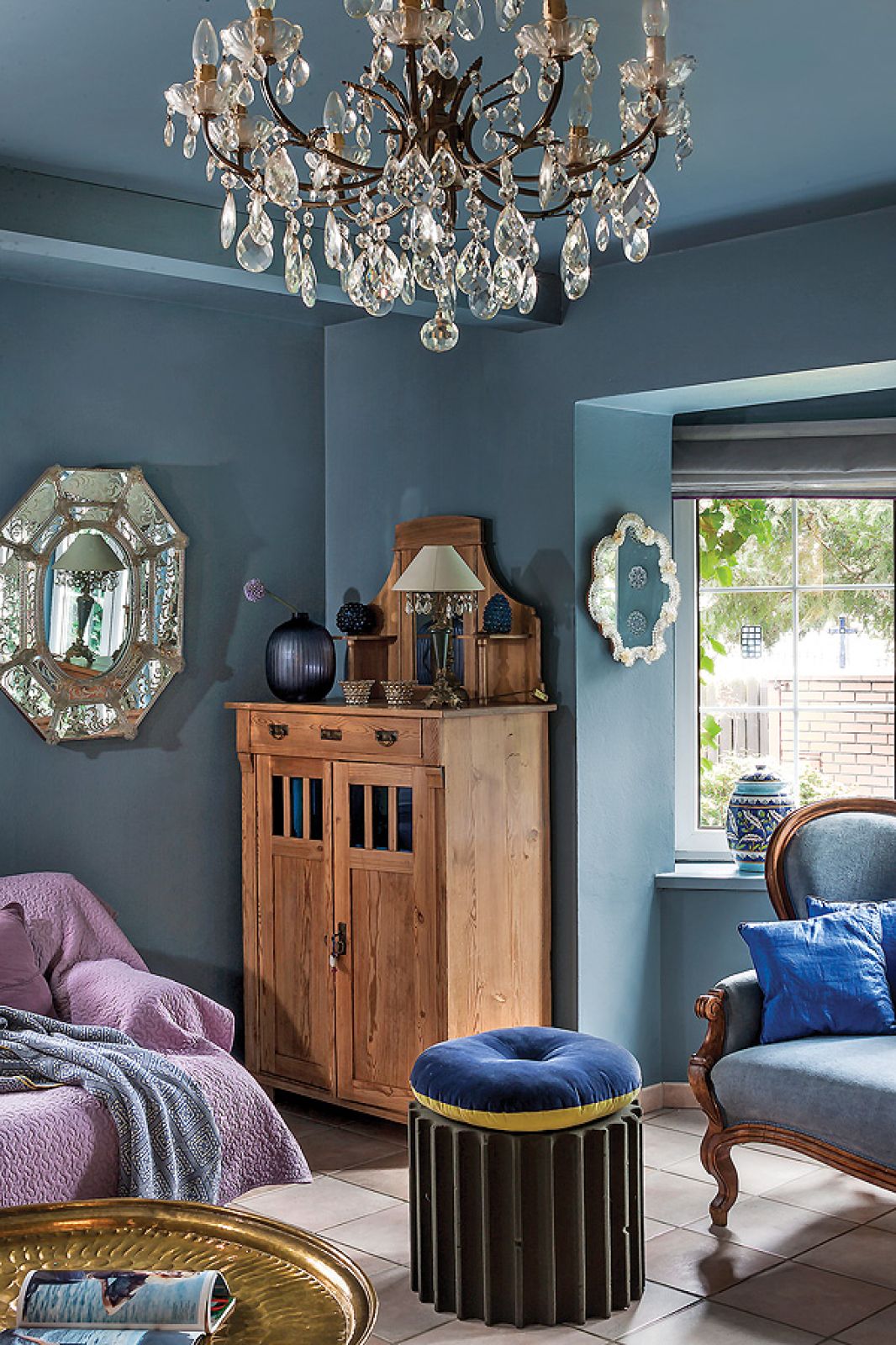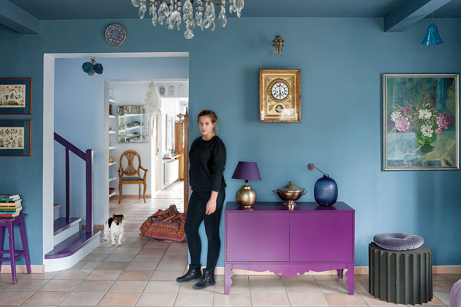 Do tego fioletowe akcenty: komoda z IKEA i podesty schodów. Wszędobylskie weneckie lustra i lampy – każda inna, bo jest i kultowa Midsummer od Torda Boontjego, i prosta, szklana z Habitatu, i klasyczny kryształowy żyrandol. – Po latach dzieci miały tego koloru serdecznie dość – śmieje się Agnieszka. – Córka Marta, architekt, domy urządza tylko w szarościach. Młodsze, Zofia i Helena, zażądały białych pokoi.