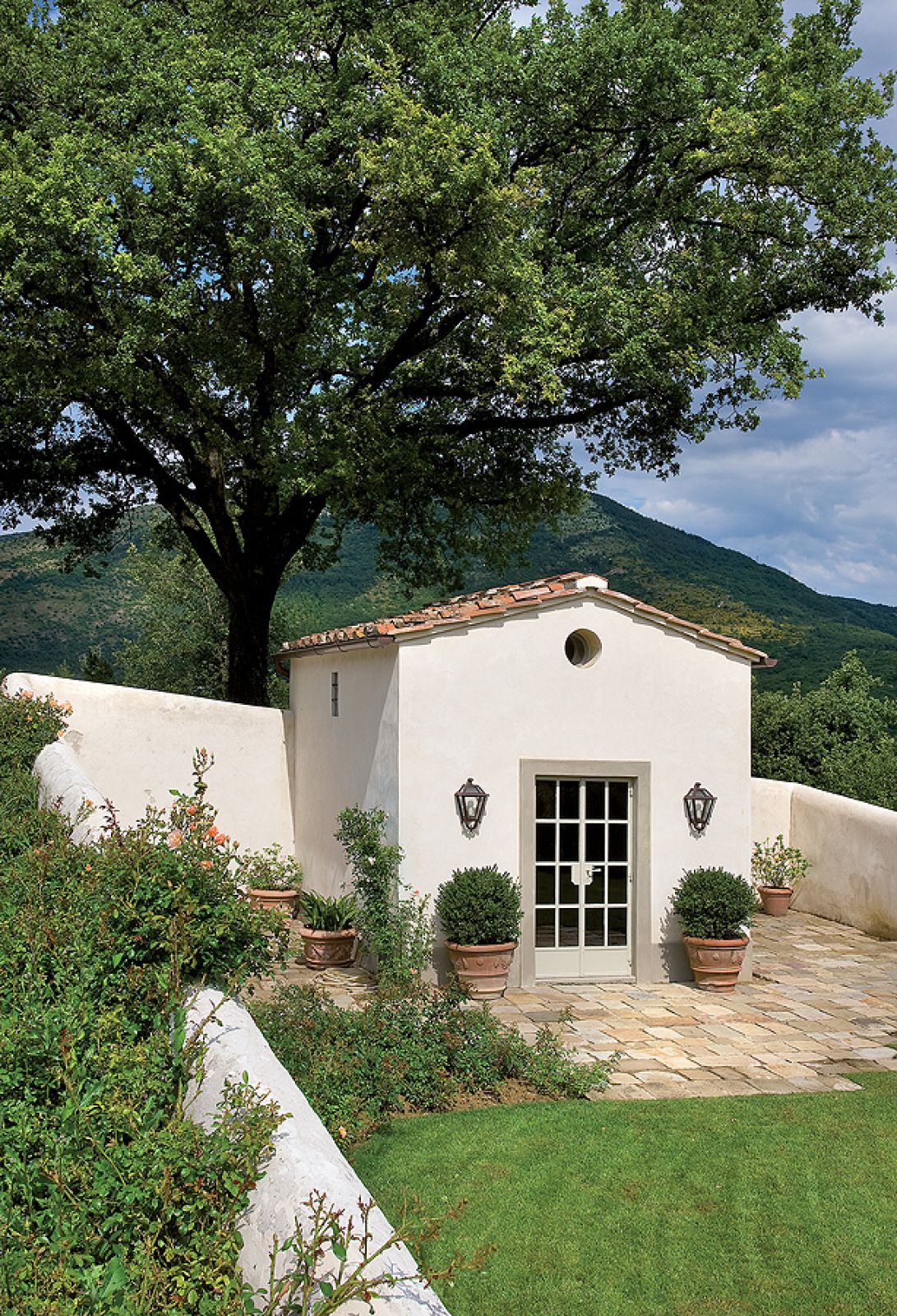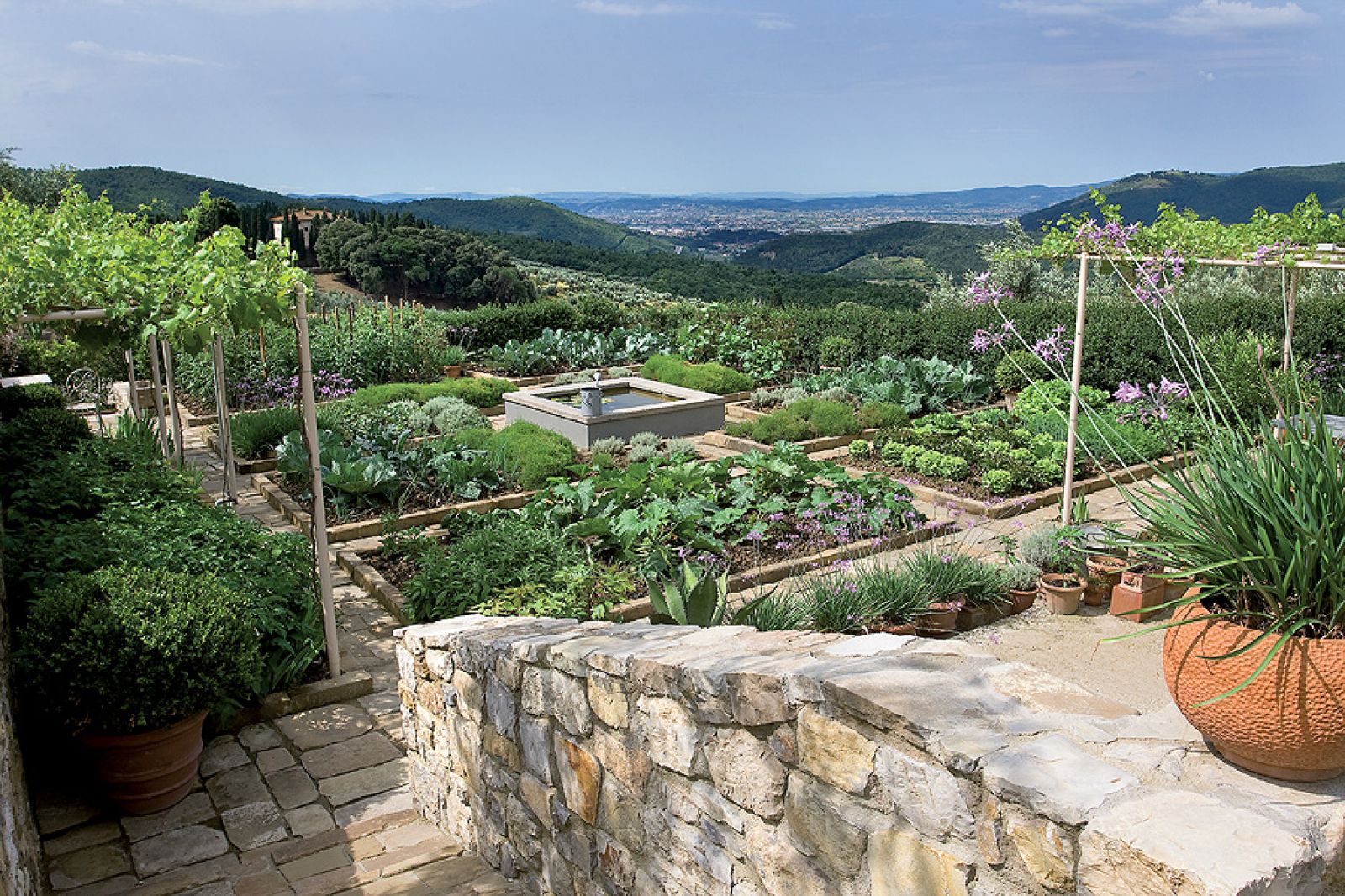 Jak projektują, najlepiej zobaczyć w ich pokazowym zakątku na toskańskich wzgórzach niedaleko miasteczka Calenzano: jest tu stary oliwny gaj, a z boku winnica, na równo przystrzyżonym trawniku, którego pozazdrościliby nawet Anglicy, rozstawiono terakotowe donice z bukszpanami, pod murkami kwitnie lawenda. Do tego oranżeria – latem otwiera się na oścież przeszklone drzwi i wstawia do niej wiklinowe kosze z ziołami.