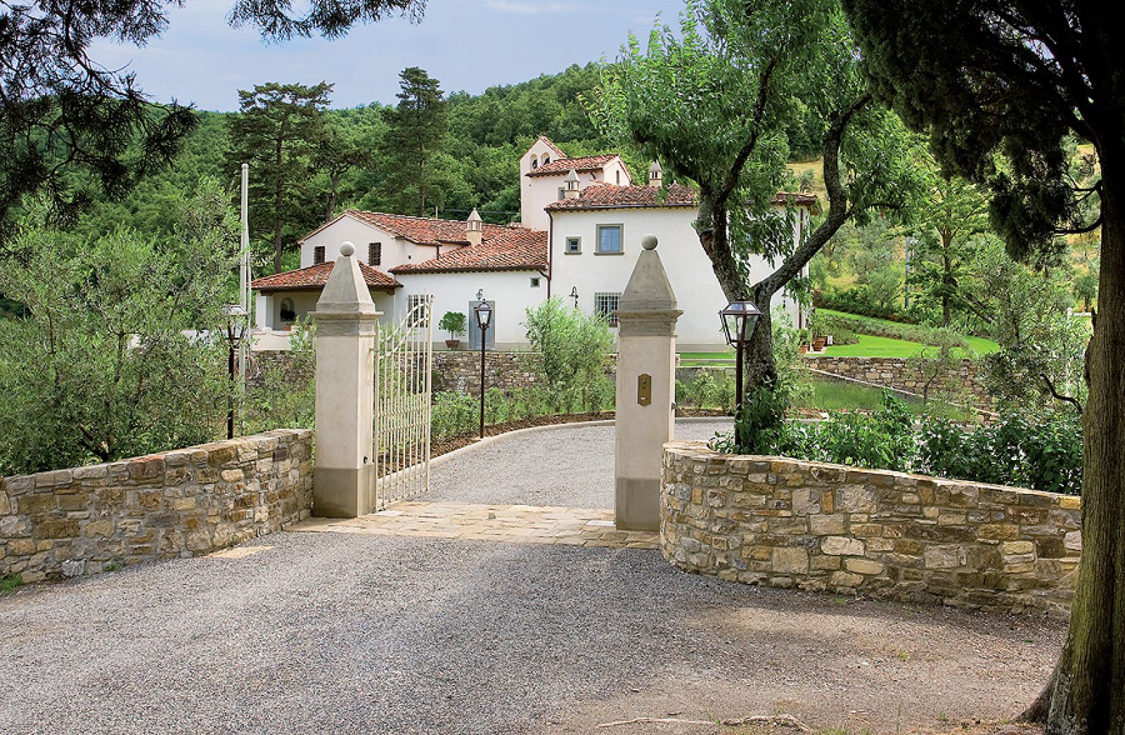 Ogród przylega do XIII-wiecznego domu. Toskański pałacyk należał dawniej do bogatych florenckich rodzin Salviati i Ginori. Ta druga pochodzi zresztą z Calenzano, jej potomkowie żyją do dziś, mają pod Volterrą piękny zamek Castello di Querceto (w którym można wynająć pokoje) i produkują wino. Co więcej, przy pałacu zachował się tak samo stary kościół Santa Lucia a Collina. W sumie 400 metrów historii – wymarzone pole do popisu dla architekta.