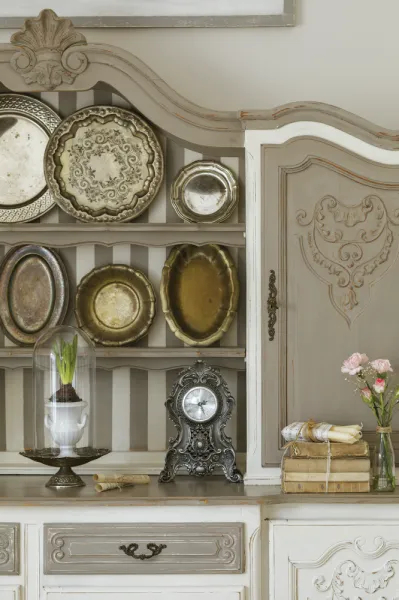 Swoje skarby Katarzyna latami gromadziła na dużym strychu w rodzinnym domu, długo przedtem niż powstał jej własny. – Ale na przykład bufet, który wypatrzyłam do salonu w trakcie budowy, ma prawie 3 metry, więc u rodziców by się nie zmieścił – opowiada. – Dlatego od razu zadzwoniłam do pana, który kładł nam w salonie kafelki na podłodze, czy są gotowe. Ostatecznie on kończył pracę w jednej części pokoju, a w drugiej ja malowałam bufet na nowe, jasne kolory. Gdy wysechł, zasłoniłam go folią – wystarczyło ją zdjąć, kiedy przyszło się wprowadzać.