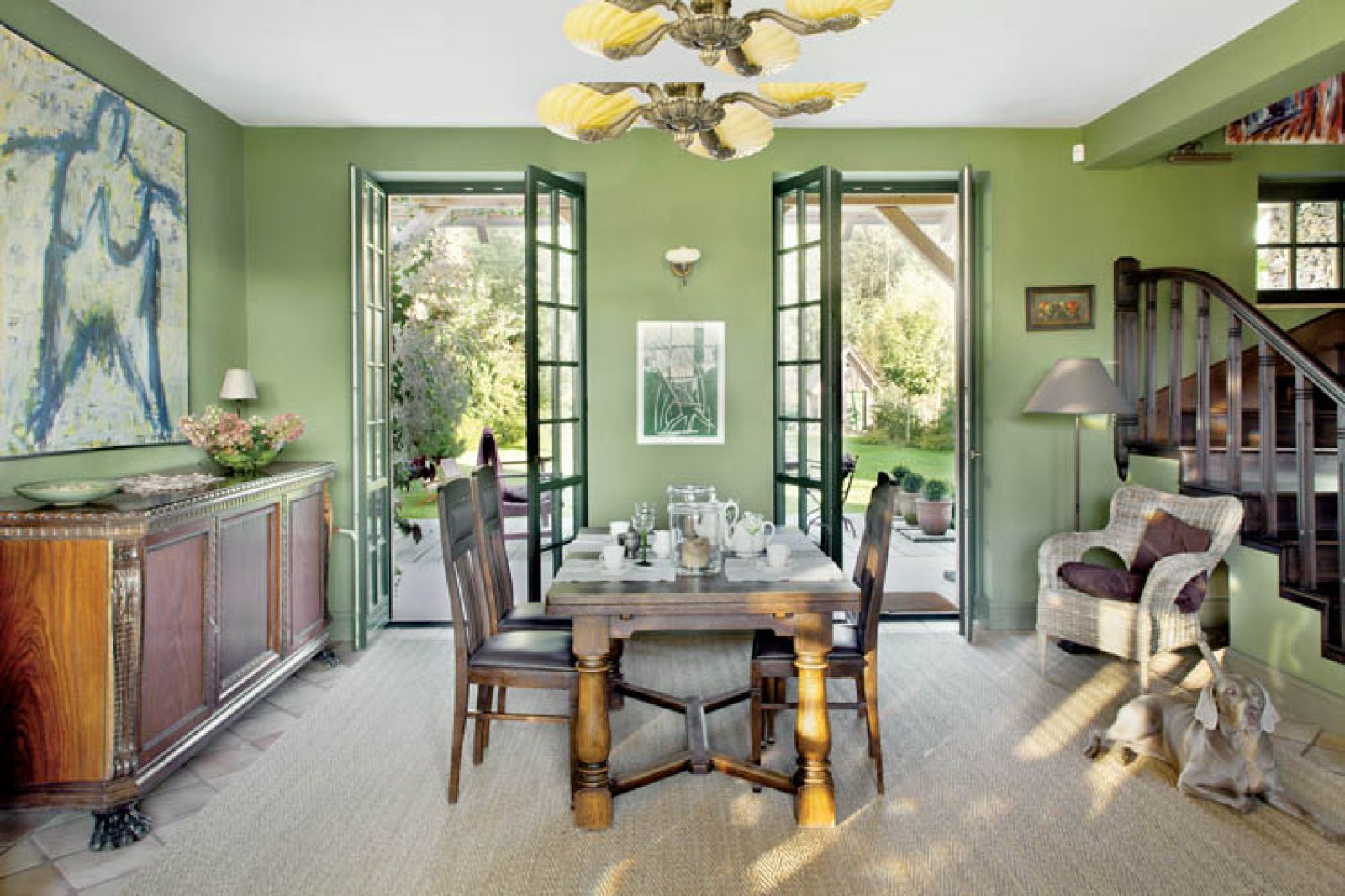 Bardzo ciemna matowa zieleń i równie ciemny brąz, który wszyscy im odradzali, okazały się dobrym pomysłem. Są tu ogromne okna, więc nie ma mowy o ponuractwie. Za to kuchnia jest jasna, w odcieniu creamy white. Mimo salonowych przestronności i tak wszyscy ją okupują. Może dlatego, że efektowna bakłażanowa kanapa w kąciku wypoczynkowym jest równie niewygodna jak krzesła zrobione ponoć kiedyś przez Wyspiańskiego dla Boya-Żeleńskiego, na których goście mdleli. Jedynym użytkownikiem sofy jest ich wyżeł weimarski.