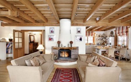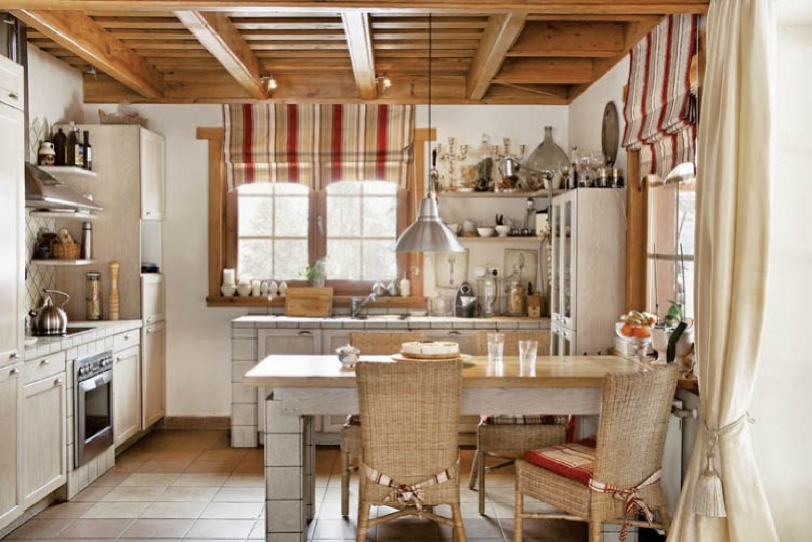 O swoim domu mówi, że jest w stylu wiejsko-szwedzko-francusko-angielskim, a wszystko opiera się tu na pomyśle. Sama zaprojektowała kuchnię – z murowanymi szafkami, obudowanymi glazurą, drewnianymi, bielonymi drzwiczkami i ogromnym dębowym stołem, też z murowanymi nogami. Kilka wnęk z półkami. Rattan, drewno.