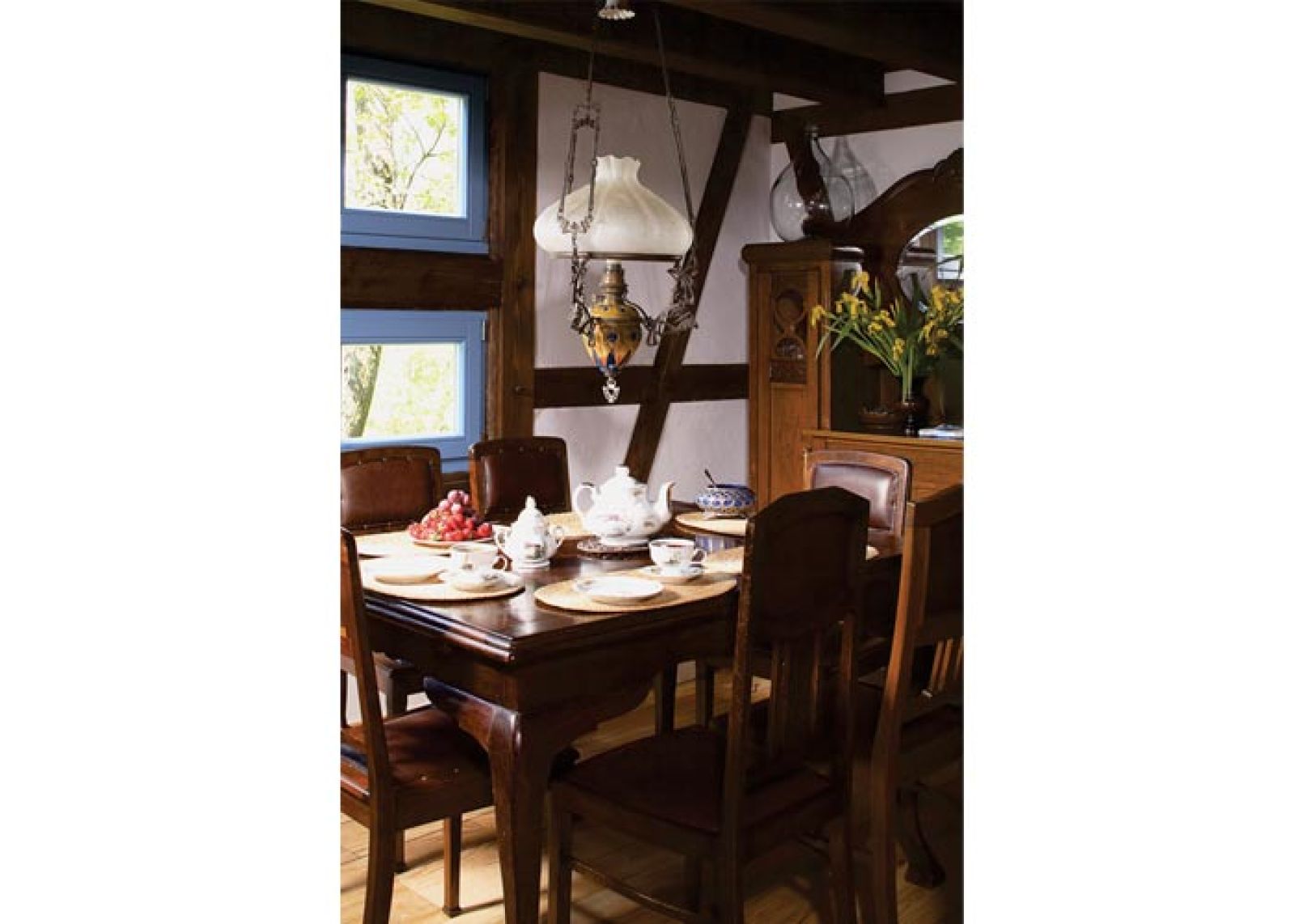 Część podwórza wyłożona jest brukiem, jak w tradycyjnych zabudowaniach rzemieślniczych Prus Wschodnich. Siedlisko zyskało nazwę Stary Młyn i jest po prostu wygodnym, rodzinnym domem z częścią przeznaczoną dla gości. Drewniane koło wodne słychać tu z każdego miejsca. Skrzypią też drewniane podłogi. - To taka wiejska muzyka – śmieje się Grzegorz.