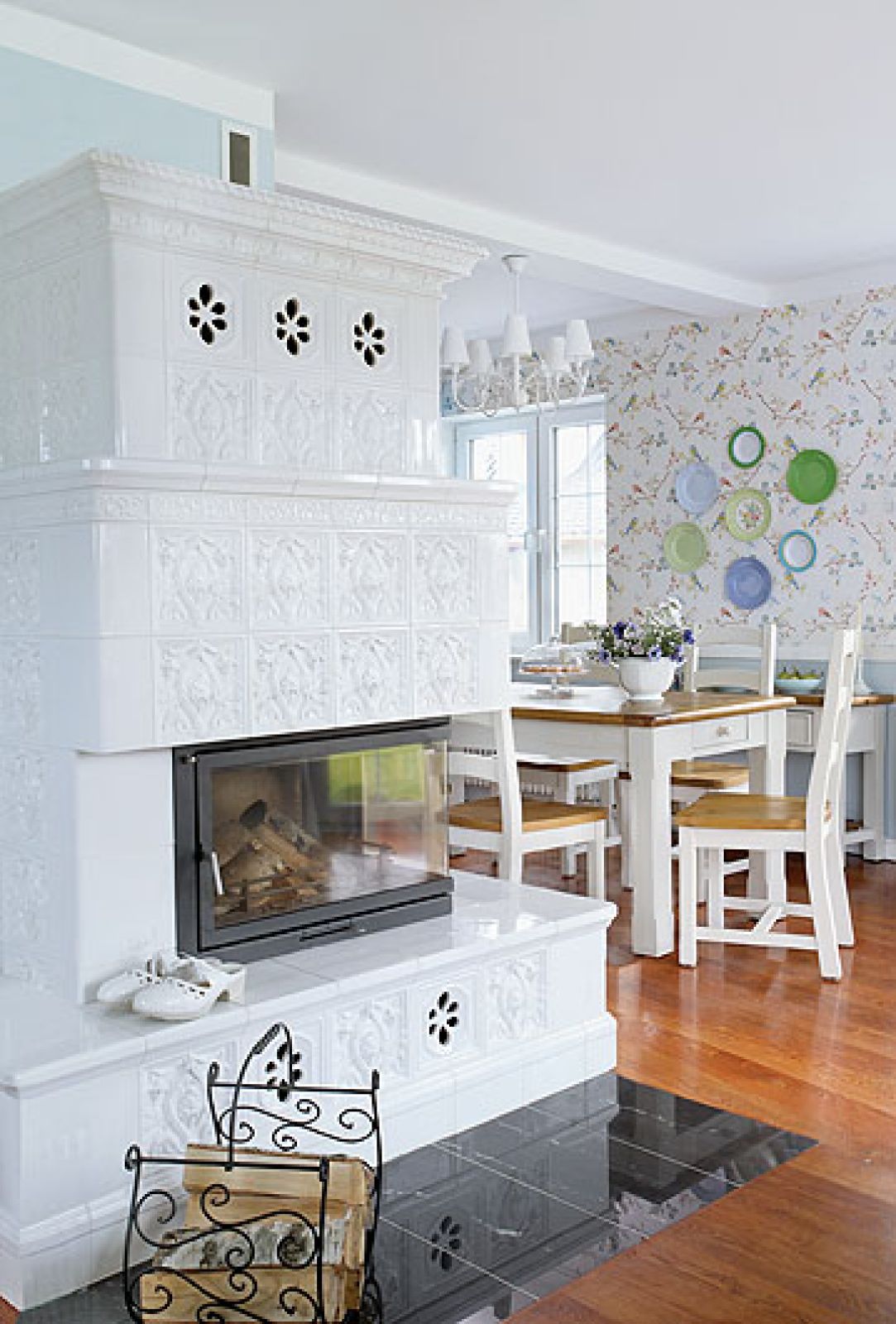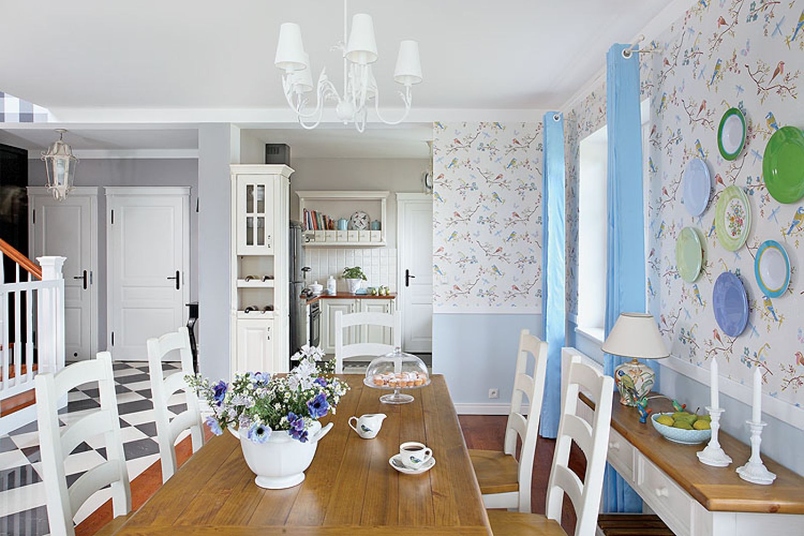 Wejście, hol, klatka schodowa i kuchnia są biało-czarne, klasyczne, z lekką domieszką glamour, jadalnia i salon – ciepłe, pastelowe, angielskie. Choć już tu Monika zaczęła przełamywać style i mieszać konwencje. – Są francuskie malowane boazerie, a z drugiej strony saski kominek, bo angielski byłby zbyt jednoznaczny – przyznaje.