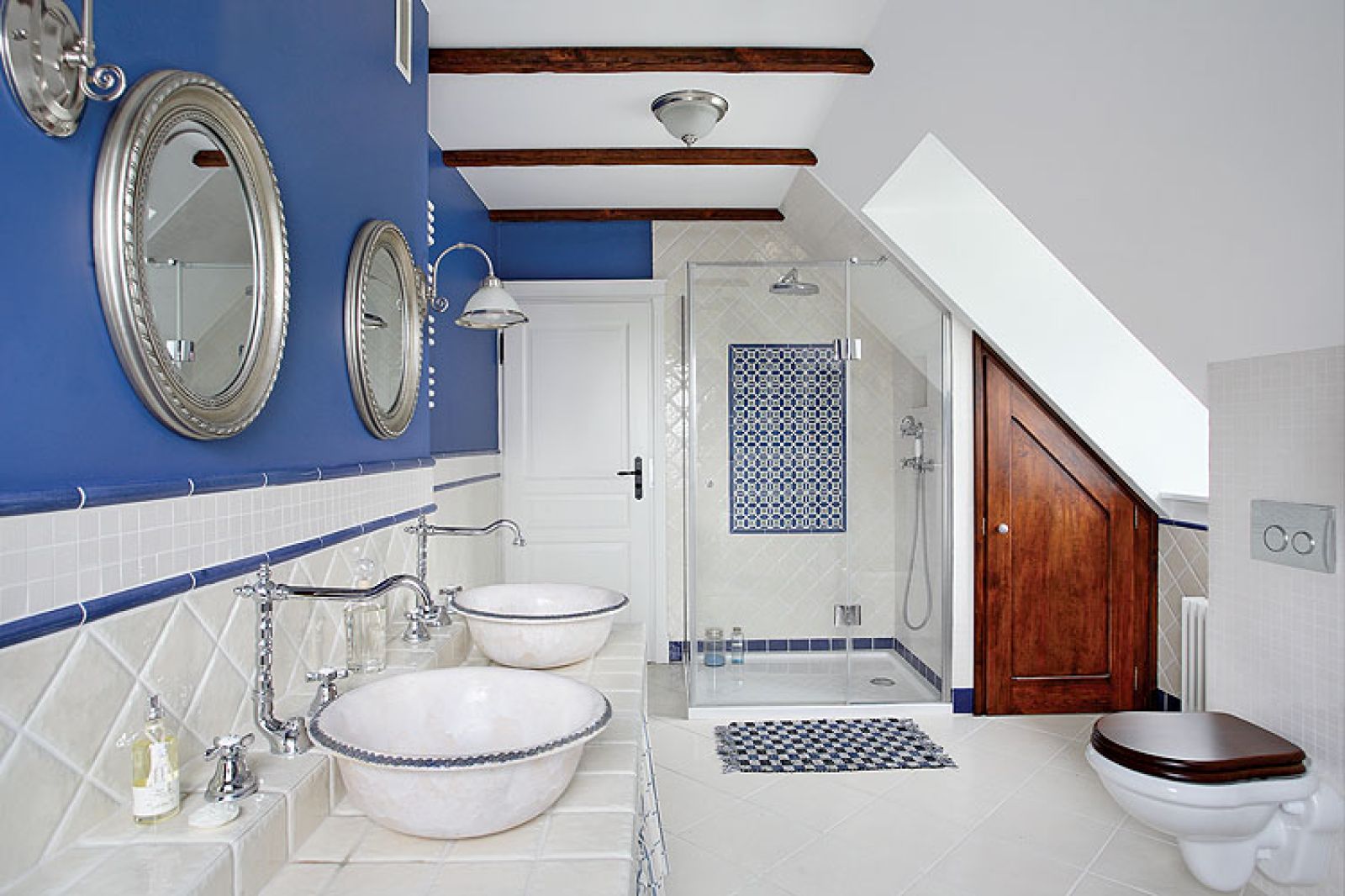 Za to całe piętro zamieniła w ciepłe, rustykalne królestwo drewna i swojskich dekoracji. Sypialnia jest graficzna, biało-czarna. Łazienka – biało-kobaltowa. A pokój dwuletniego Eryka biało-pastelowy. Właśnie z tego pokoju rozciąga się najpiękniejszy widok na jezioro. – Kiedy Eryk był malutki, budził się wcześniej niż okoliczne koguty i swoim krzykiem stawiał na nogi cały dom – opowiada Monika. – Trochę mnie to na początku złościło i męczyło. Do czasu, gdy zobaczyłam wschód słońca nad jeziorem. Wkrótce zaczęła nastawiać budzik, parzyć kawę i z nosem przyciśniętym do szyby oraz Erykiem do boku wypatrywać pierwszych promieni liżących czarnosrebrną taflę wody.