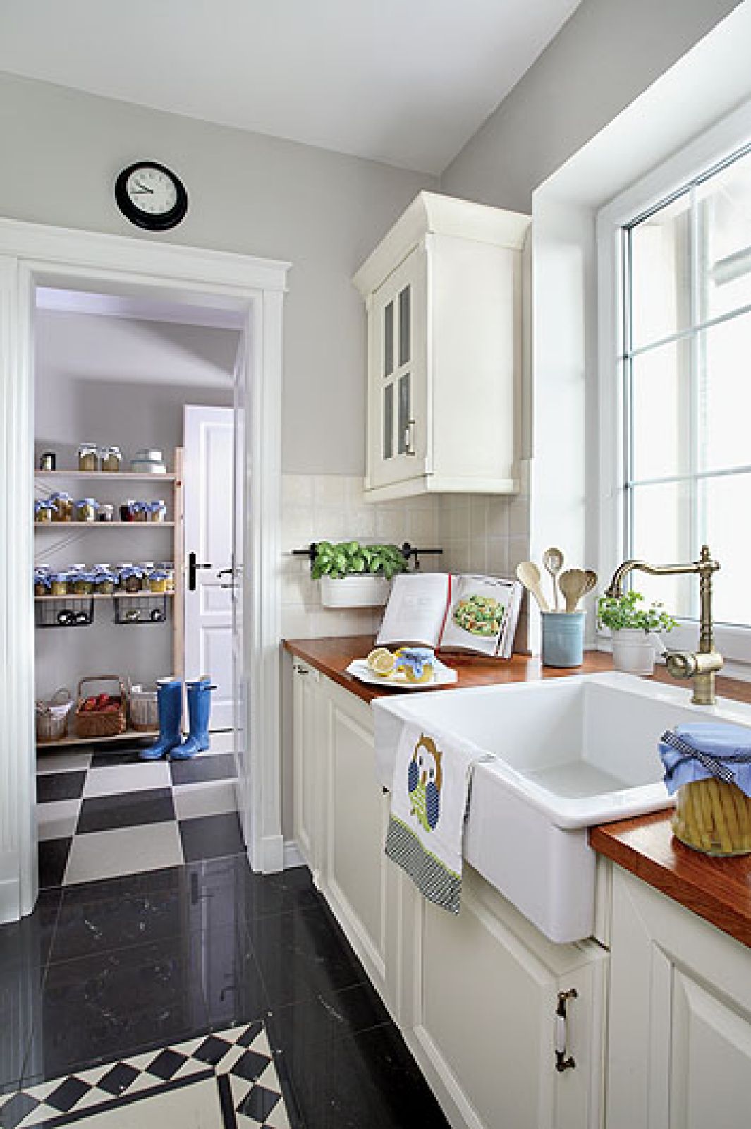 Monika miała swoje „must have” do pierwszego domu: duży stół z litego drewna, przy którym zasiądzie cała rodzina, duży kominek, bo uwielbia ogień i ciepło, oraz wyspę w kuchni. – Kuchnia okazała się trochę za mała i wyspa przegrała ze spiżarnią. Bo spiżarnia to rzecz naprawdę niezbędna w dużym domu na odludziu, gdzie zimą potrafi zasypać nas na kilka dni – wzdycha.