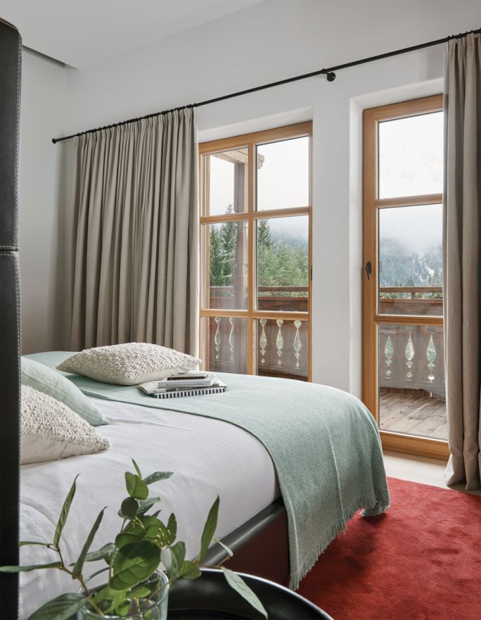 Willa, którą zaprojektował pod górami Pinzgau, jest tego najlepszym przykładem. Dom był wzorowany na lokalnych chałupach, ale Berndowi Gruberowi powierzono odświeżenie architektury oraz unowocześnienie wnętrz chaletu. Architekt skorzystał z możliwości, jakie daje nowoczesna technologia. Zamiast malutkich okien, typowych dla tradycyjnych chaletów (żeby z ogrzanych wnętrz uciekało jak najmniej ciepła), zaprojektował ogromne, dobrze zaizolowane termicznie okna, i już to wystarczyło, żeby dom otworzył się na przyrodę i wspaniałe widoki. Plecami budynek mocno oparty jest o górski stok, więc z jednej sypialni i łazienki na wyciągnięcie ręki są śnieżne zaspy. Po drugiej stronie Gruber zaprojektował ogromny taras bez żadnych tralek czy barierek – wyłożona świerkowymi deskami podłoga przechodzi po prostu w łąkę, a ta po kilkudziesięciu metrach ginie w lesie.