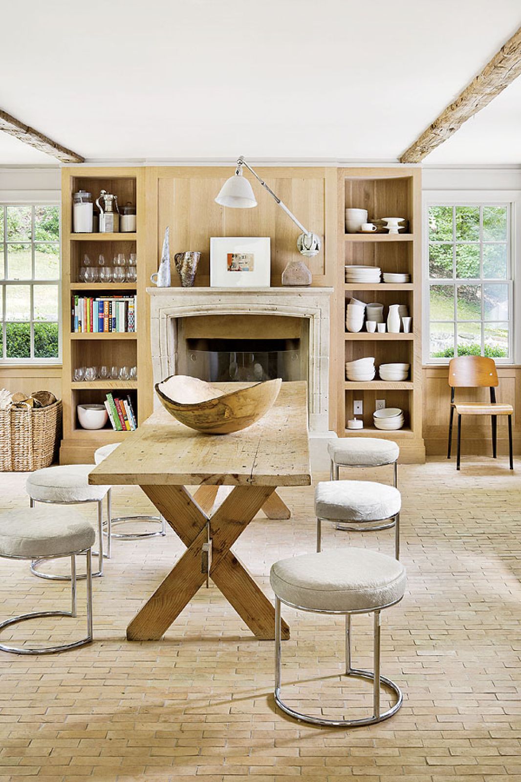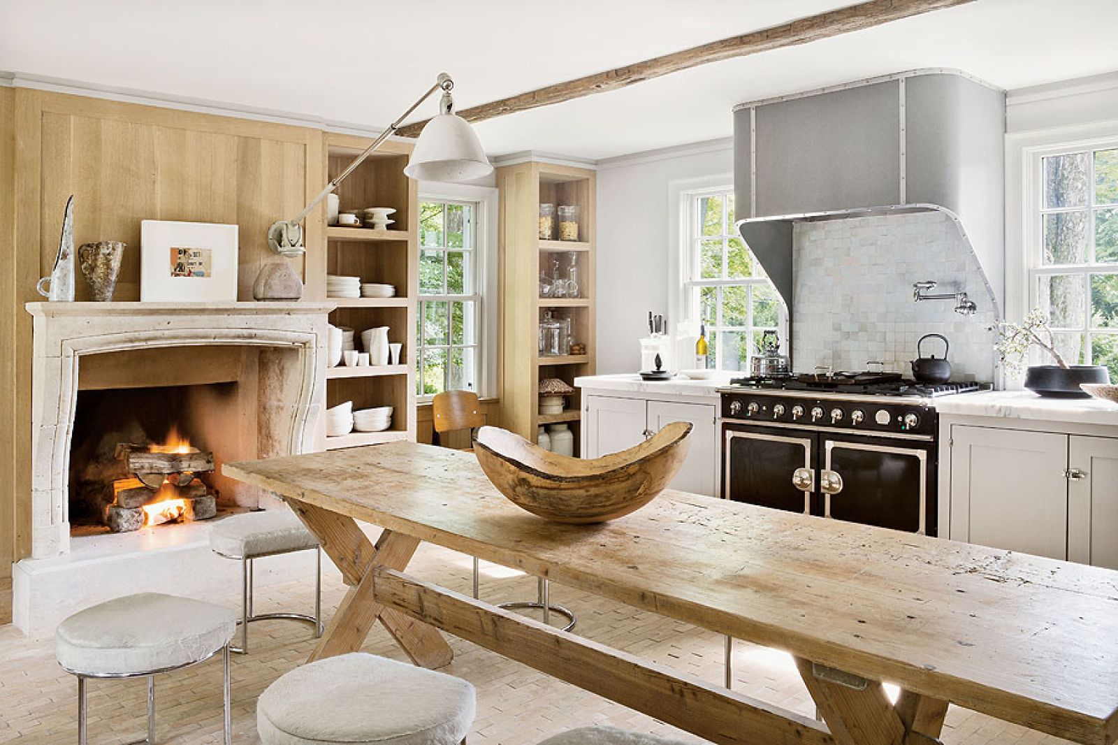 Remont zajął nowym właścicielom aż dwa lata, bo Julie, znana projektantka, chciała sporo w domu pozmieniać, a jednocześnie zachować jego unikatowy charakter. Innymi słowy, dużo było gimnastyki. Wyburzenie ścian, przeniesienie głównego wejścia (pierwotne musiało wychodzić na drogę), dołożenie tarasu oraz kominków do wszystkich sypialni i przestrzeni wspólnych.