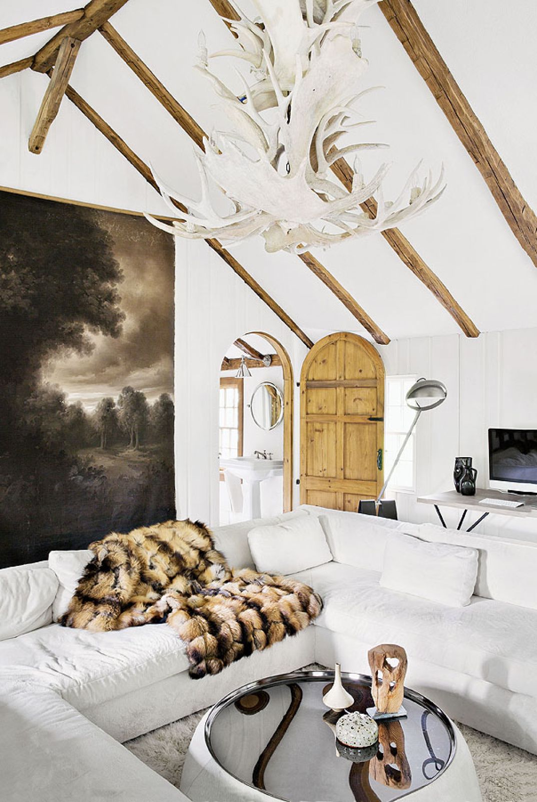 W domu Julie nie ma feerii barw, jest za to całe bogactwo faktur. Wszędzie na podłogach rzucone są dywany, chodniki, zwierzęce skóry: krowie, kozie i owcze. Sporo widać drewna - oryginalne belkowanie z epoki starannie odrestaurowano, w kuchni położono nawet boazerię. Mięsiste kapy na łóżkach i powłóczyste zasłony w oknach czy łazienkach ocieplają wnętrze. Mają za zadanie otulać i rozleniwiać. Do tego służy ten dom. Oczywiście nie każdy jest tego samego zdania. Bo córka woli brykać na koniu.