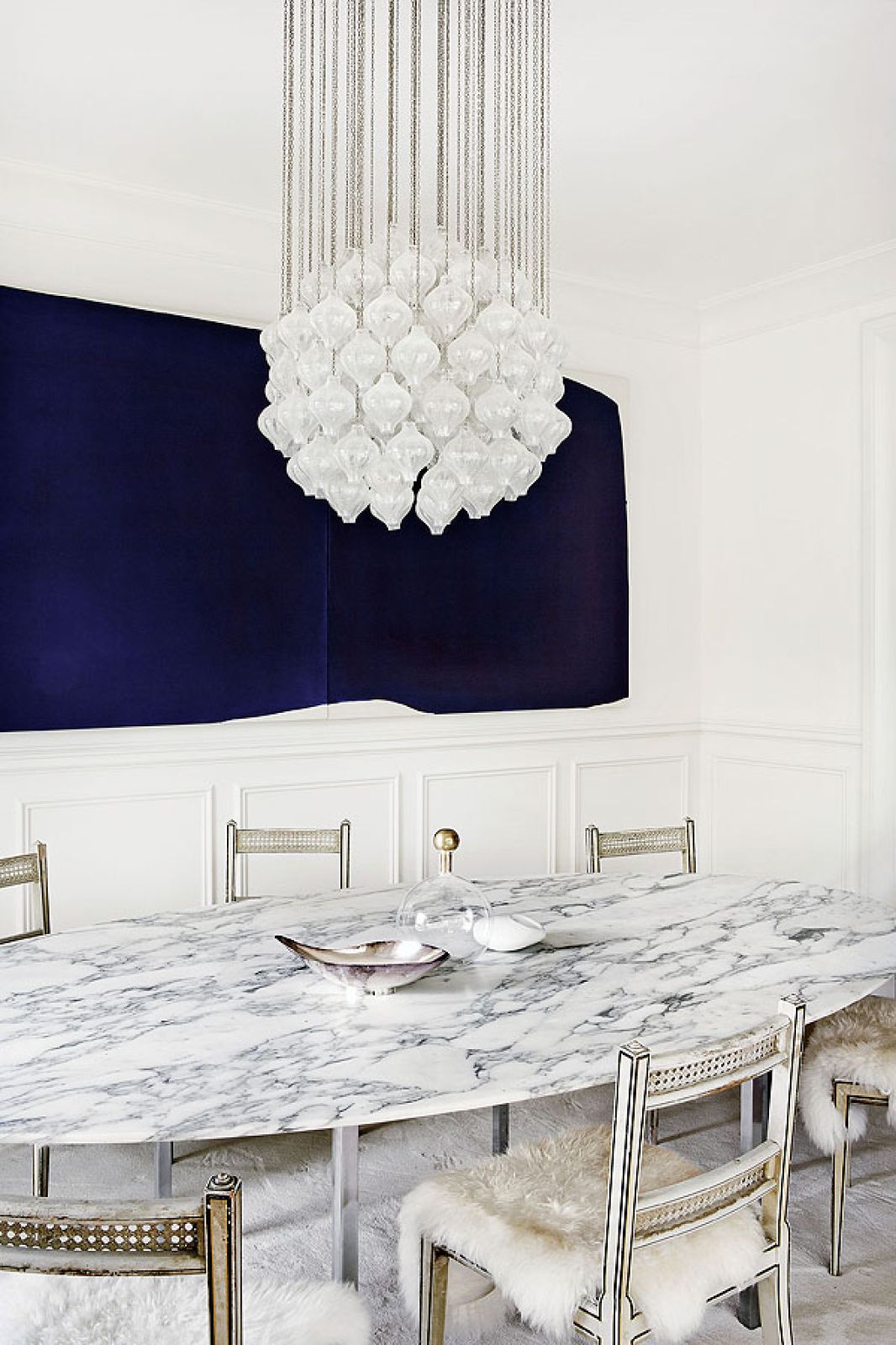 W każdym pomieszczeniu jest coś niezwykłego, od czego nie sposób oderwać oczu. W jadalni to lampa złożona z kilkudziesięciu szklanych bombek - istna rzeźba. Wydaje się, że to specjalnie dla niej powieszono na ścianie monochromatyczny kobaltowy obraz, bo na jego tle o wiele lepiej wygląda. W łazience, urządzonej w stylu angielskim, zachwyca z kolei uplecione ze sznurka krzesło, które kojarzyć się może z jakimś etnicznym rzemiosłem. Ale autorem mebla jest paryżanin Christian Astuguevieille, notabene dyrektor artystyczny słynnej marki modowej Comme des Garçons. Poza pleceniem mebli ten perfumiarski nos robi też biżuterię i co roku wypuszcza 14 nowych kolekcji!