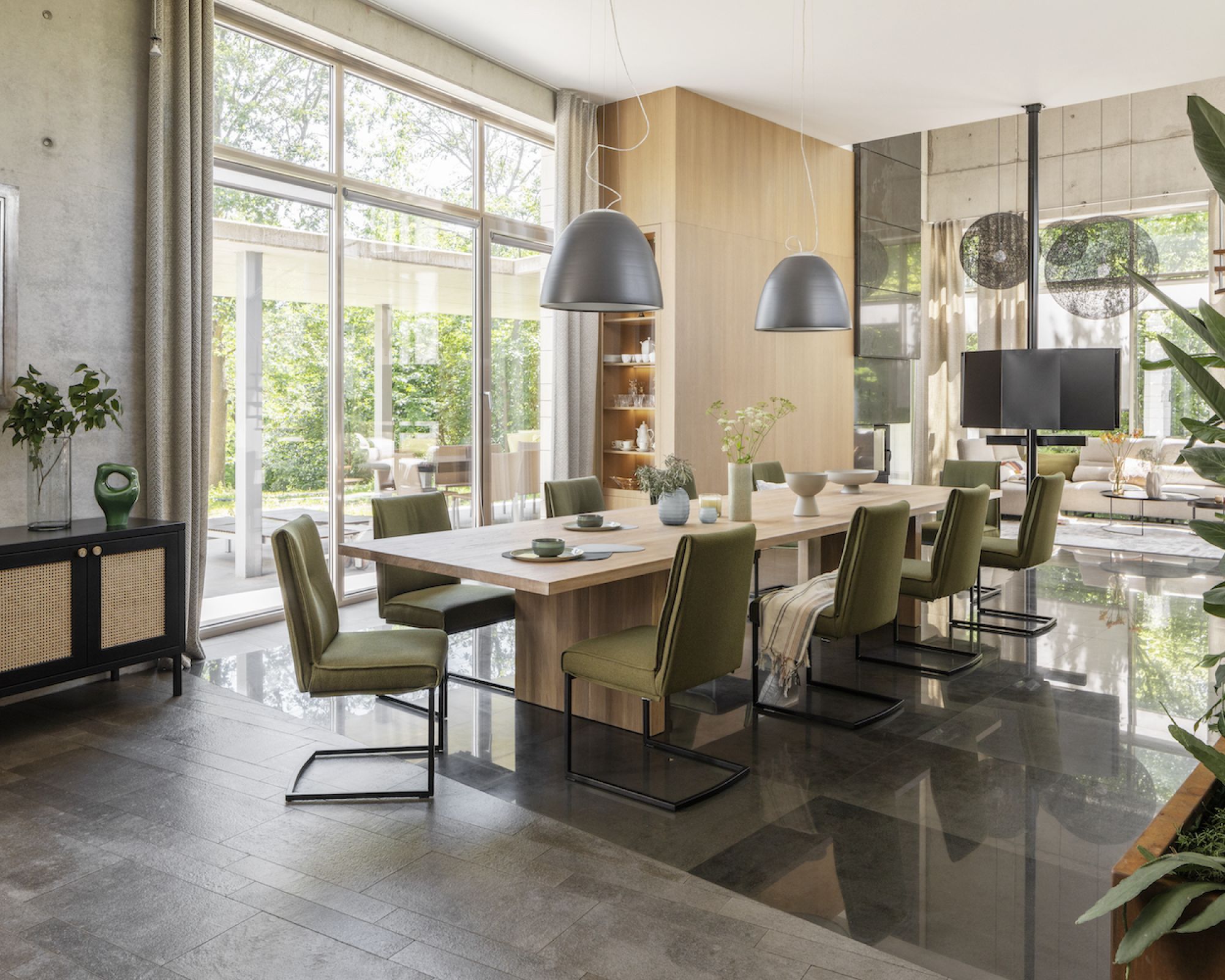 Nowoczesny dom otulony zielenią – we wnętrzach królują drewno, beton, stal oraz szkło