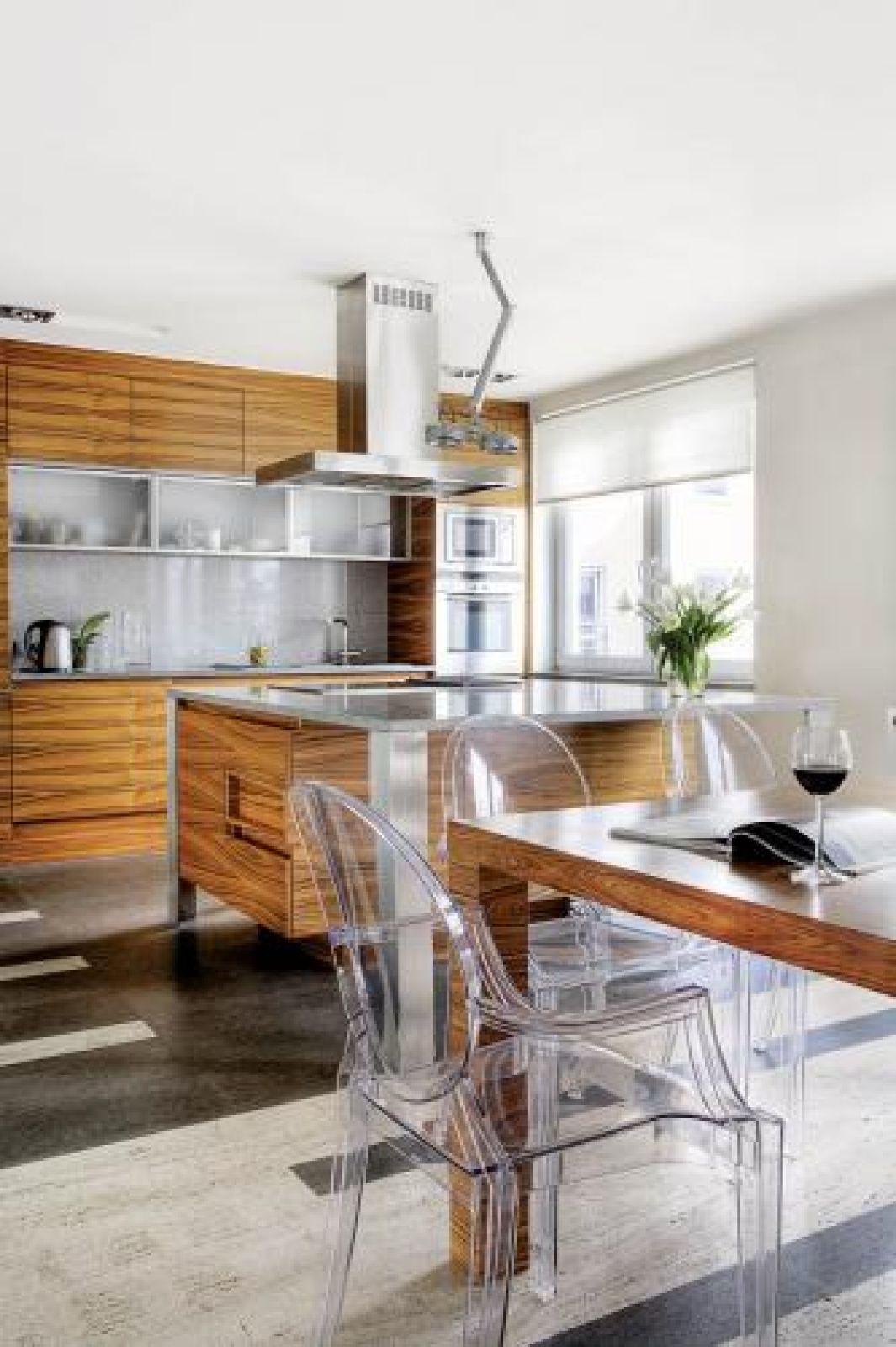 – Wiele osób myśli, że architekt to ktoś, kto ma tylko gustownie dobrać meble i kolory ścian, a przecież nasza praca polega na wymyślaniu przestrzeni na nowo, możemy zmienić ją nie do poznania, przy okazji inaczej organizując życie. Bo projektowanie to pewna filozofia – wyjaśnia Joanna. W warszawskim apartamencie architekci poprzestawiali albo zburzyli część ścian i odeszli od klasycznego podziału pokoi, subtelnie je tylko zaznaczając. Tym sposobem, niczym najwytrawniejsi fotografowie, znaleźli dużo dobrego światła i przestrzeni, a te z kolei były idealnym otoczeniem dla szlachetnych materiałów – drewna i kamienia.