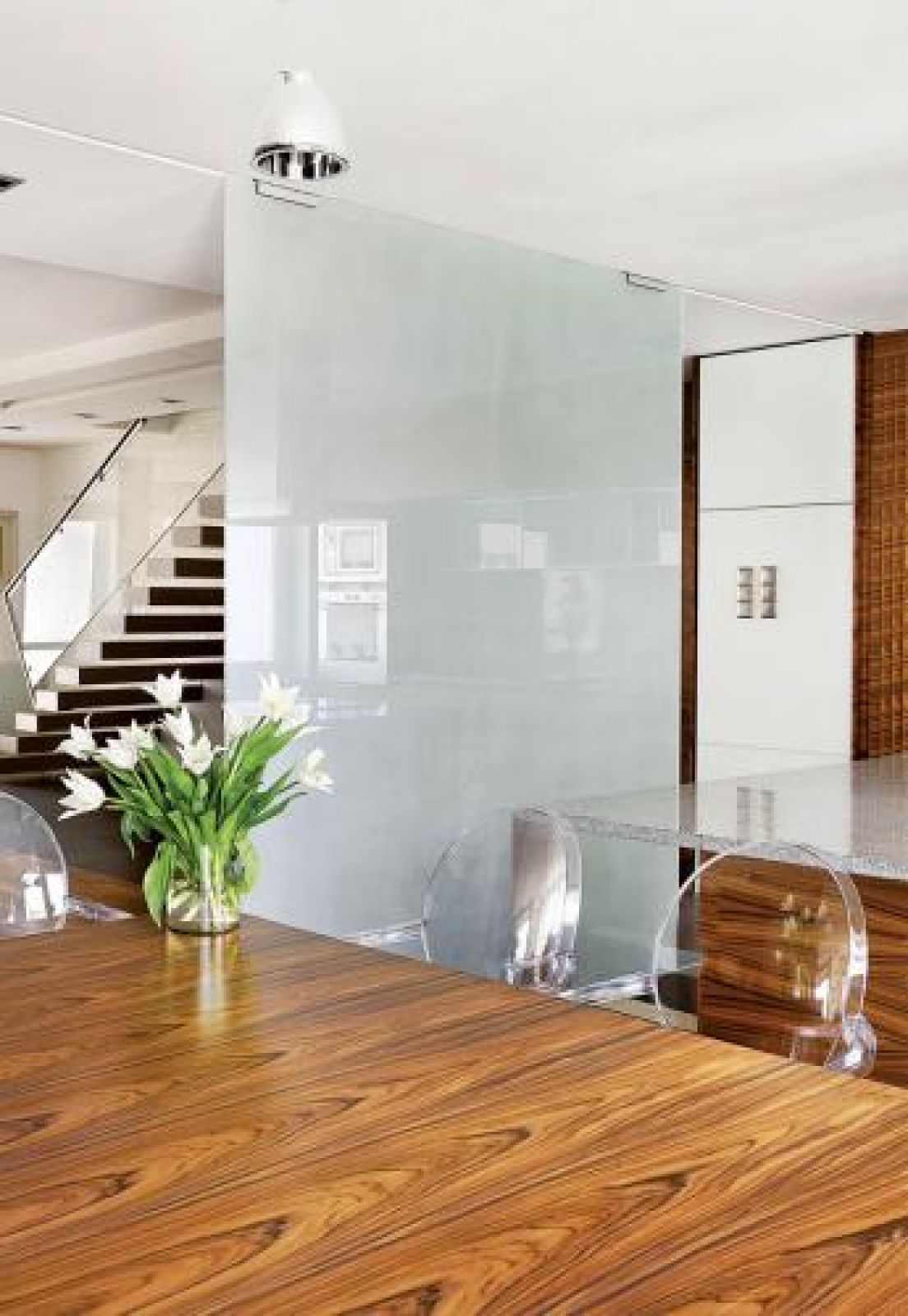 Wprowadzili nietypową, jak na tamte czasy, dekorację, bo z palisandru, dziś bardzo modnego. I do tego tak wyjątkowo go użyli – na meblach, podłodze, ścianach, schodach, drzwiach – że odnosi się wrażenie, jakby płynął przez wszystkie pomieszczenia, łącząc je w całość. – Powstał wzbogacony minimalizm, na który niedługo potem zapanowała moda, a do tego obaliliśmy kilka stereotypów. Choćby taki, że to, co agresywne, może być subtelnym tłem, bo krzykliwy palisandrowy fornir w zestawieniu z podłogą z grafitowego bazaltu złagodniał – śmieje się Joanna.