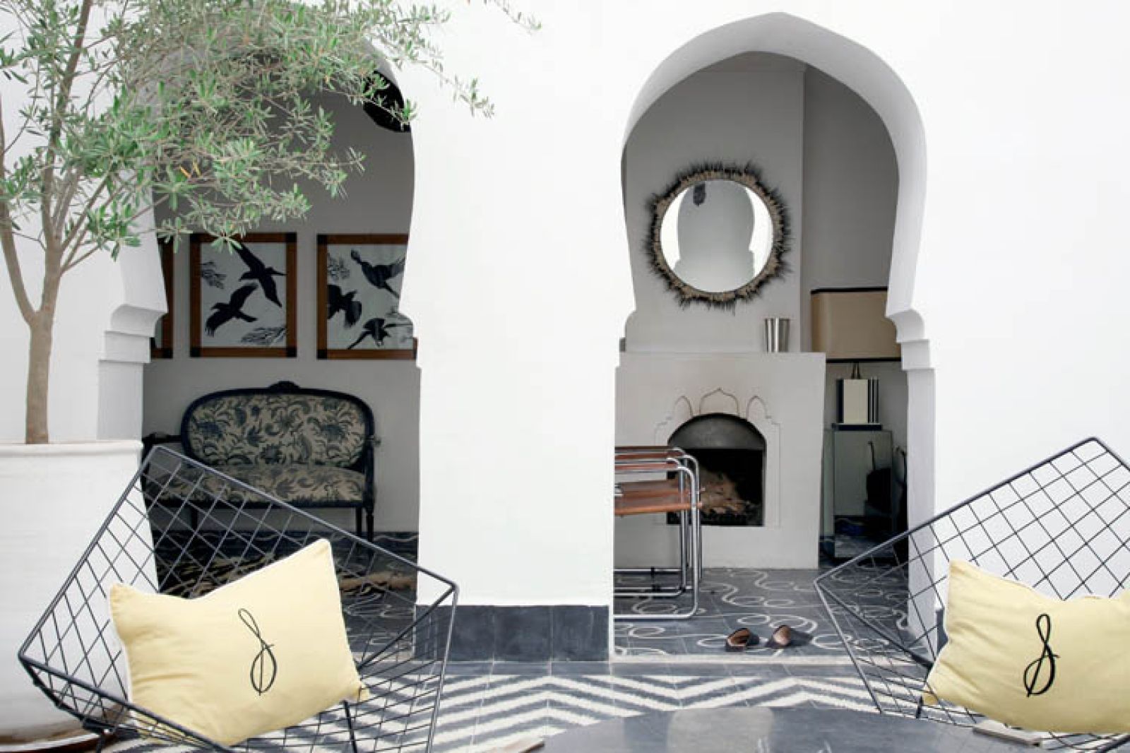 Caitlin i Samuel dobijają targu, a restauracja domu staje się ich obsesją. Oglądają stare zdjęcia marokańskich domów, albumy, wertują fachową literaturę. Patrzą, jak inni obcokrajowcy dostosowali swoje riady do współczesnego życia. Ten typ budynków cieszy się popularnością wśród przybyszy nie tylko w Marrakeszu, ale i w Fezie czy Casablance. Kluczem do urządzenia całości staje się mozaika na patio. Chcą, aby dom był biały, zdobić go mają jedynie graficzne elementy. Poza tym potrzebują wytchnienia od wszechobecnego w mieście różu. Tutaj wszystkie budynki, mury i murki są w tym właśnie kolorze. W różowym mieście będzie biały dom z graficznymi dekoracjami.