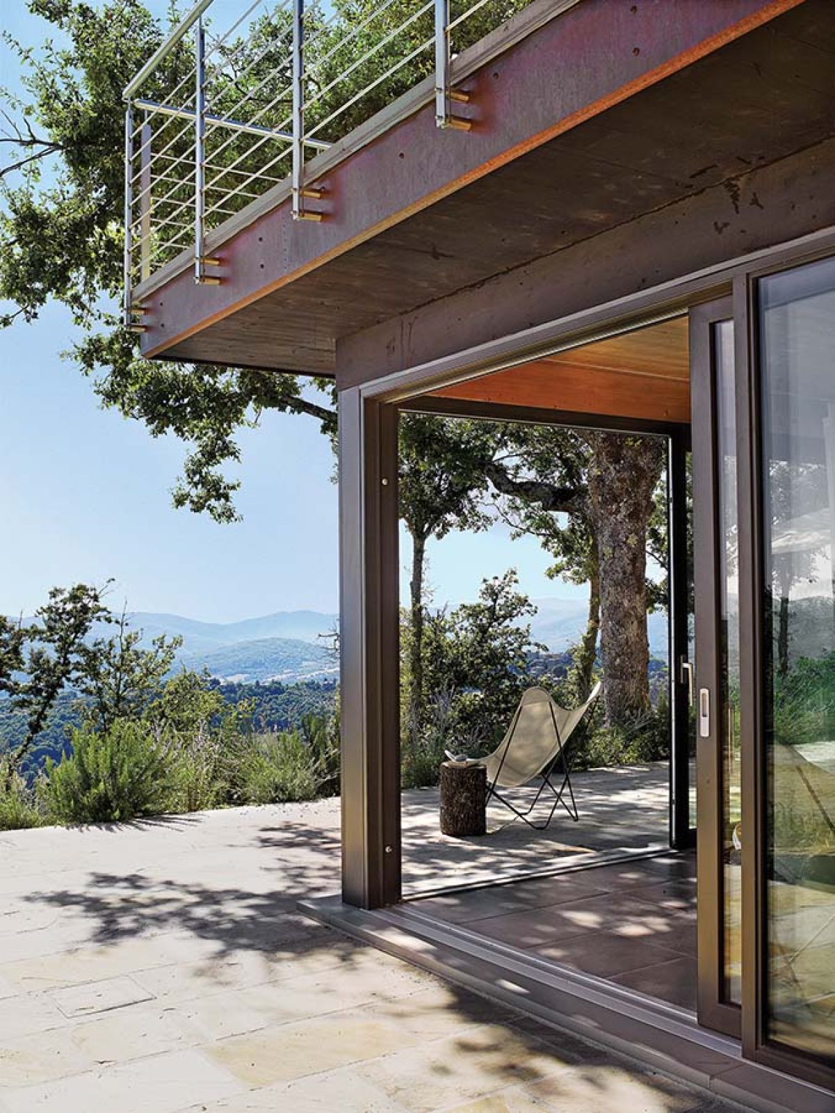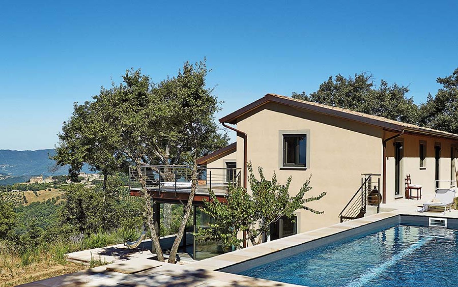 Niemałym wysiłkiem w miejscu pasterskiej szopy bez prądu, wody i gazu postawili dwustumetrowy dom, który mógłby startować w konkursie na najlepszy widok z okien. Działka, położona 700 m n.p.m. niedaleko umbryjskiej wioski Preggio (którą zamieszkiwali już Etruskowie), wchodzi w głąb dębowego lasu, a przed nią roztacza się panorama gór, dolin i Jeziora Trazymeńskiego. Dom, choć współczesny, ze sporymi przeszkleniami, ma umbryjski koloryt – na przykład spadziste dachy kryte tradycyjną dachówką.