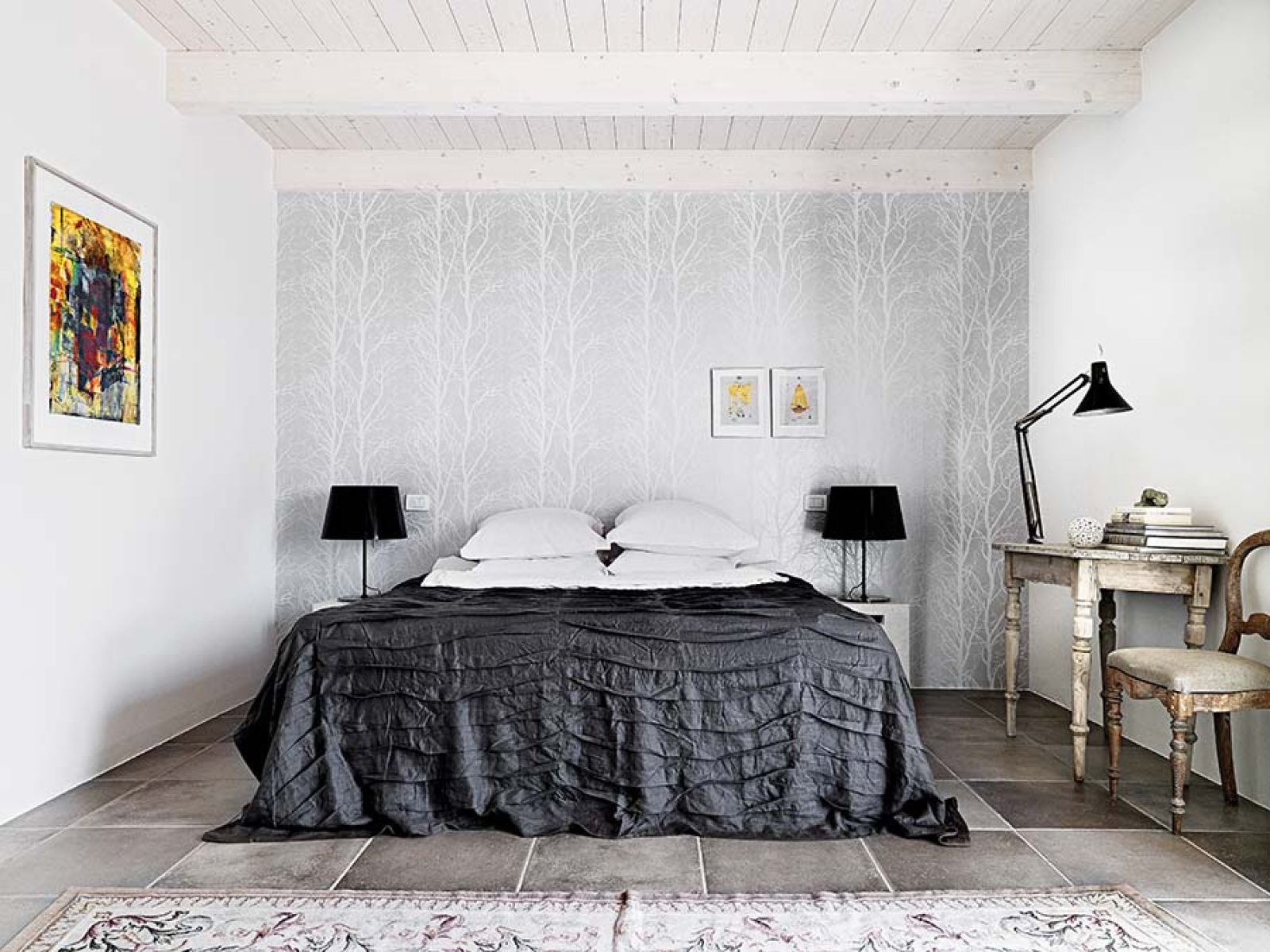 Duńczycy urządzili go z charakterem. Zgrabnie połączyli antyki, często znalezione na ulicy, z szarymi, nieco chropowatymi płytkami na podłodze. Na ścianach zagrały czarno-białe fotografie (głównie Kristiana) i srebrzyste tapety w sypialniach. Wykorzystali niemal wszystko, co pozostało z budowy. Z desek sami zrobili meble: sofę, fotele, stół i ławy. Proste w formie i stuprocentowo skandynawskie. W końcu budując się w Italii, nie zapomnieli o korzeniach.