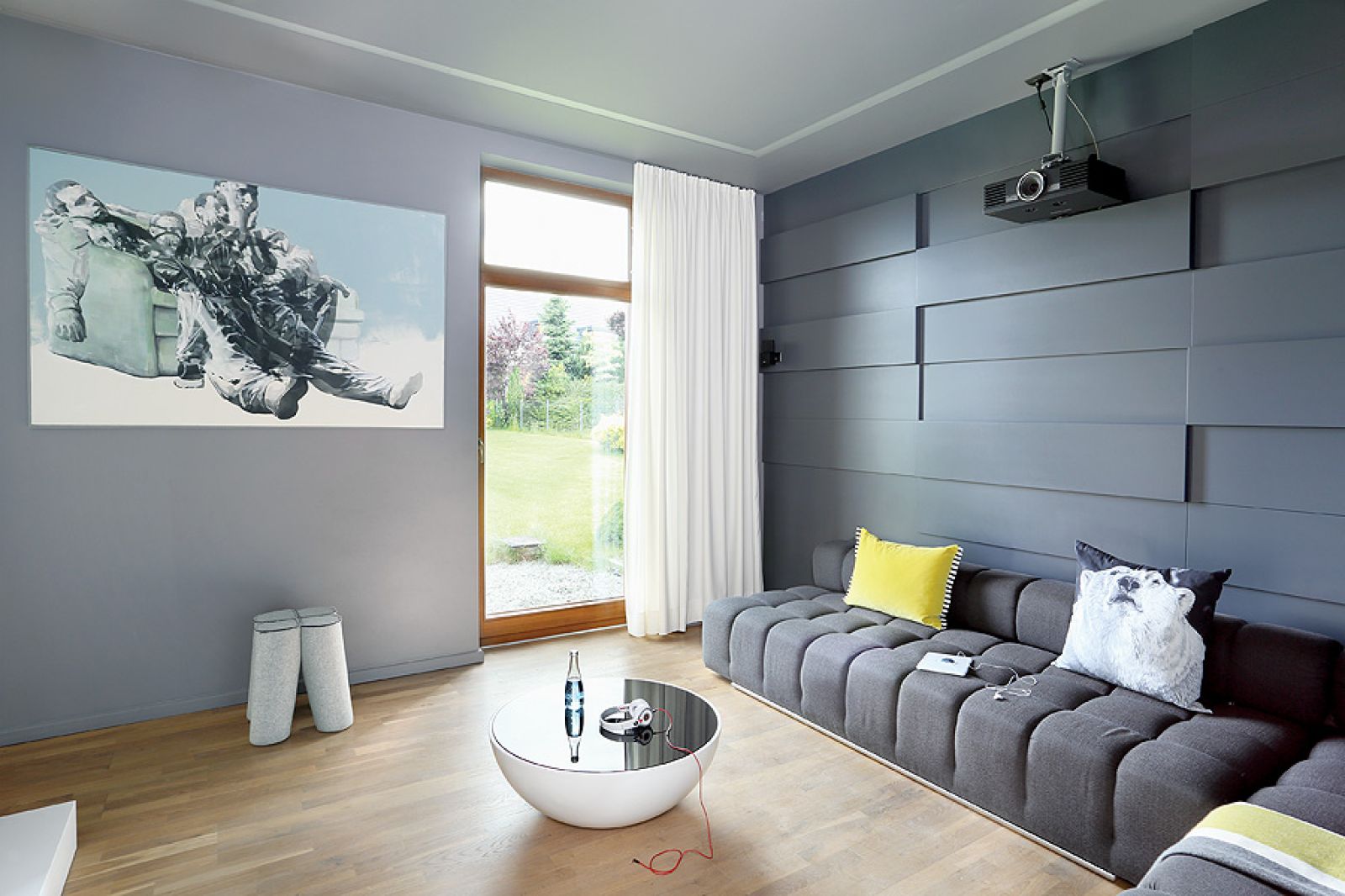 Przez długi czas główną ozdobą parteru była czarna ściana w kuchni udekorowana komiksowymi scenkami z życia rodziny. Postaci z dymkami, zabawnymi dialogami wychodziły spod ręki pana domu (wiadomo, copywriter). Zastąpiło je dość niecodzienne dzieło – nowoczesny mural namalowany kolorową kredą, który przedstawia Małgosię. – Długo musiałam się przyzwyczajać do siebie leżącej w kuchni – śmieje się. Ale za to jakie jest zaskoczenie, gdy wchodzą tu goście!