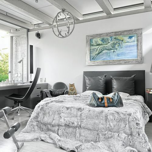 Ale większość mebli to dzieło innego Filipa, młodego monachijskiego dizajnera Philippa Pleina. – Pojechaliśmy z mężem na paryskie targi Maison & Object i tak nam wpadł w oko, że zamówiliśmy tir z jego meblami.