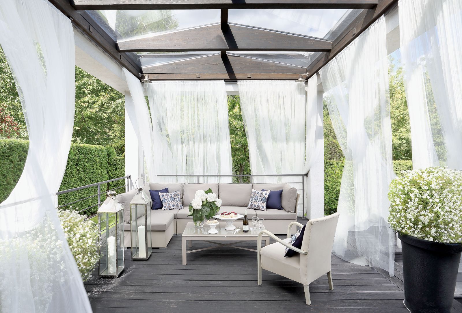 Gdy pytam, czy nie miała ciągot, żeby wyreżyserować swój dom, odpowiada: – Ależ tak zrobiłam! Sama zaprojektowałam wnętrza, meble, detale. Bryła i funkcje domu to projekt pracowni architektonicznej Archmo Marcina Moldzyńskiego, oczywiście aktywnie się w ten proces włączyłam. Mottem domu jest ciągła pogoń za słońcem. Żyje się tam, gdzie akurat docierają jego promienie. Dlatego zbudowałam z każdej strony taras.