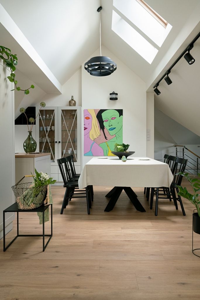 Jasno, nowocześnie i przytulnie. To 100-metrowe mieszkanie na poddaszu ze skosami urządzono funkcjonalnie i zgodnie z trendami