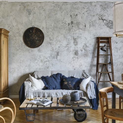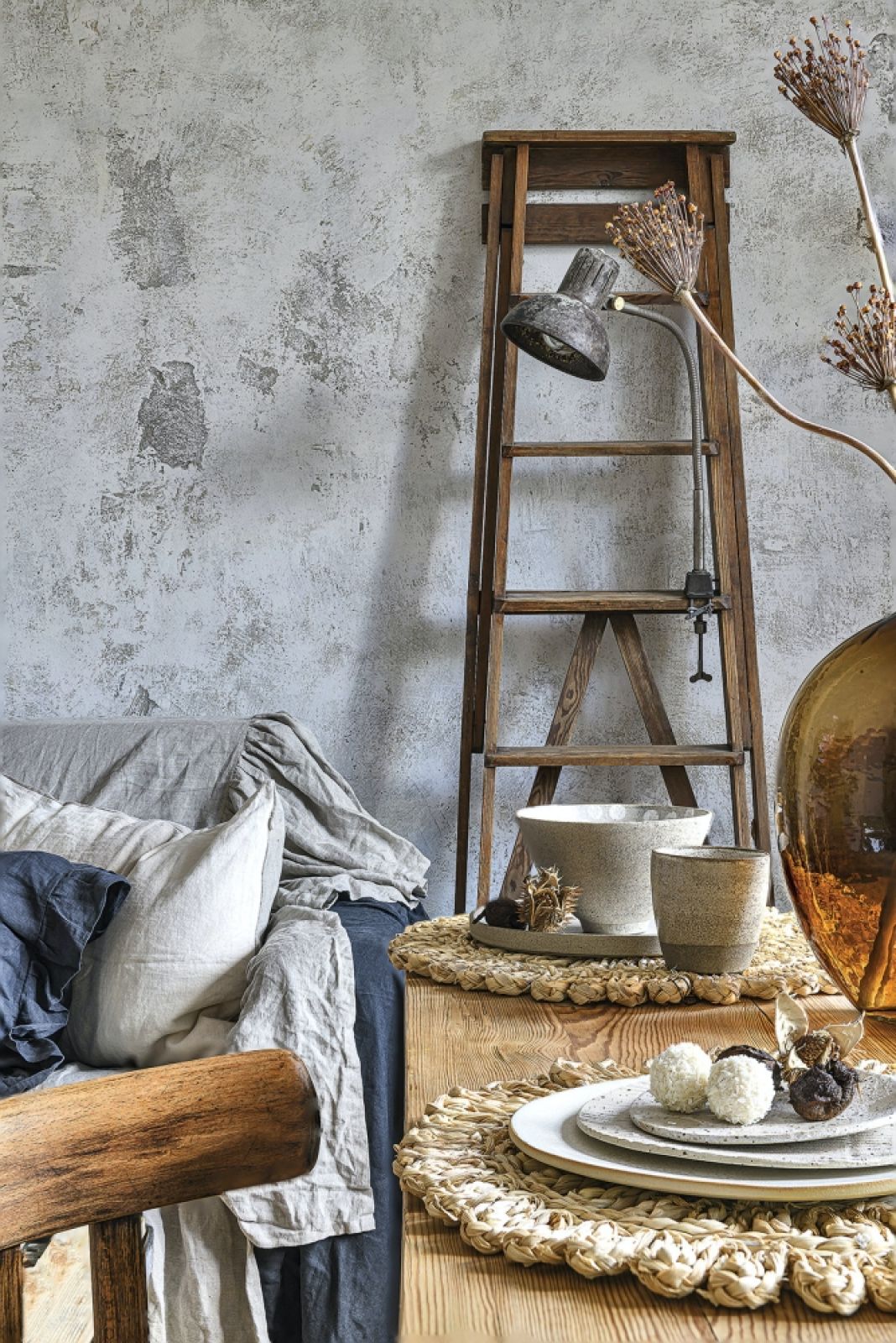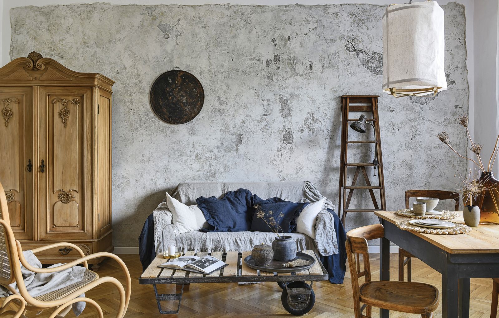 Ściany w stylu wabi-sabi i samodzielnie odnawianie meble