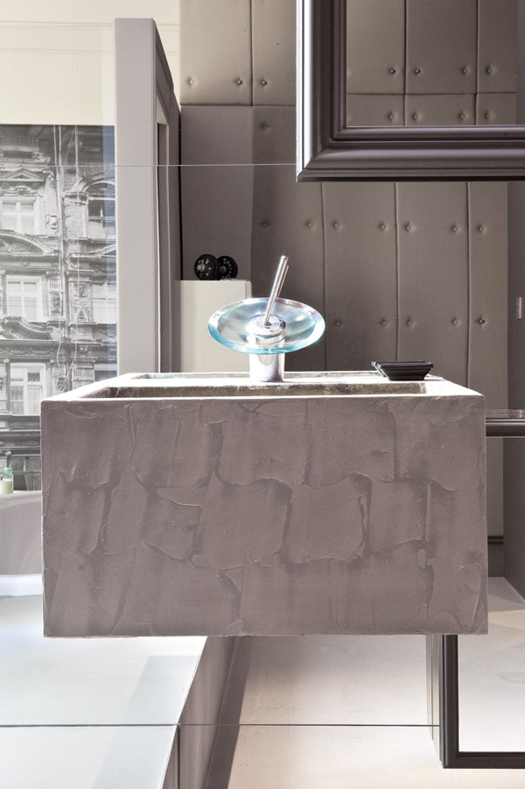 Joanna: – Najlepiej widać to w łazience, gdzie ściany zastąpiły szklane tafle, które robią wrażenie tajemniczej głębi. Jacek: – Widok jest intrygujący, bo mamy tu kilka perspektyw. Wrażenie podkreśla tapeta zrobiona ze zdjęcia.