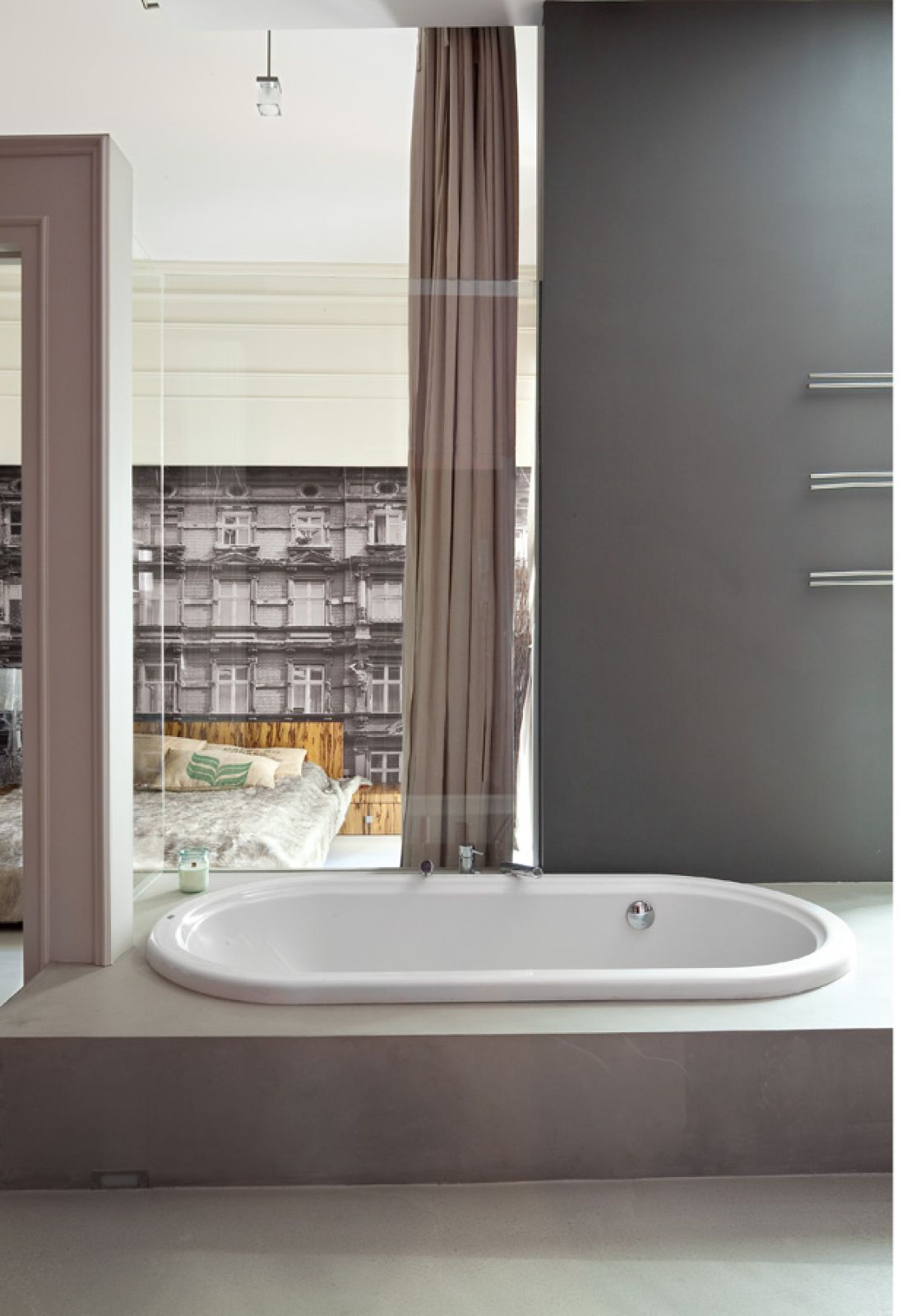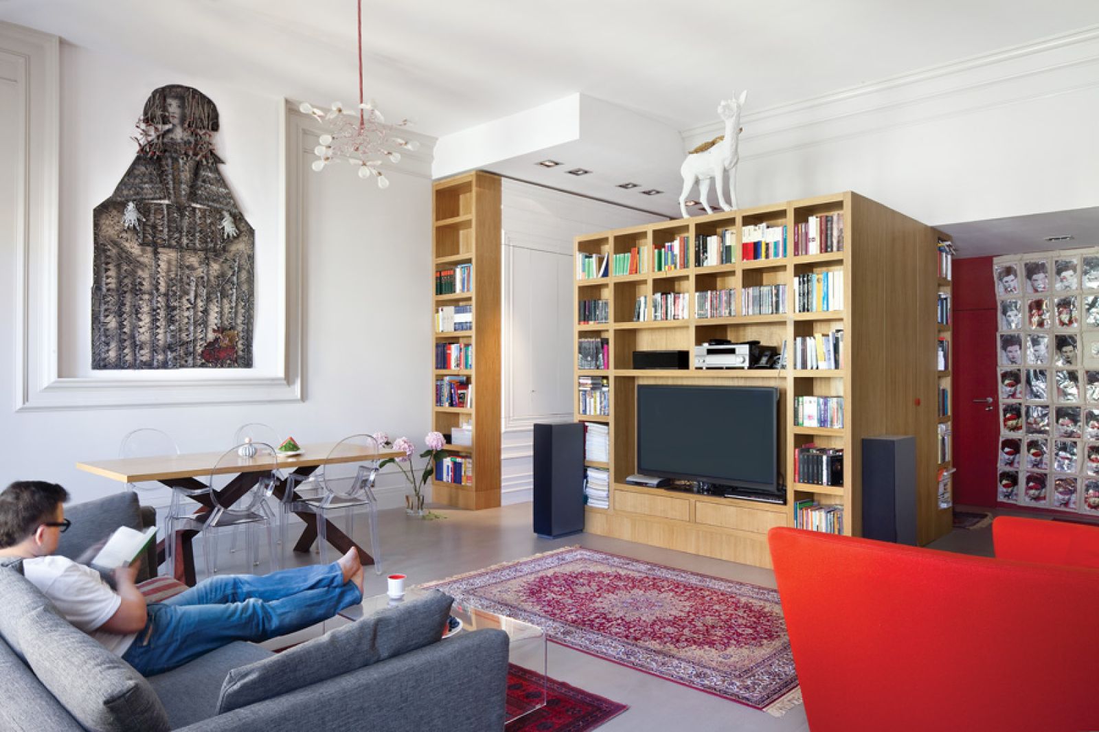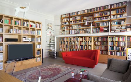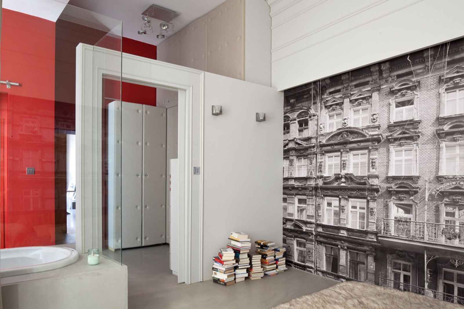 Raz uwolnionej przestrzeni nie chcieli już dzielić bardziej, niż było to konieczne. Jacek ma więc olbrzymi salon z książkami w roli głównej i ukrytą przed gośćmi sypialnię z łazienką. Używając literackiego języka, można by jego mieszkanie porównać z powieścią szkatułkową.