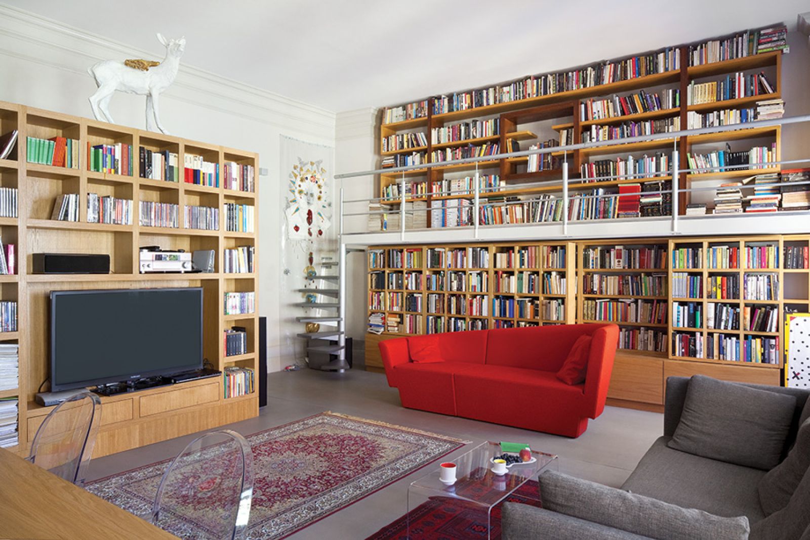 Ile tomów zgromadził? Nie wie dokładnie, ale pewnie z kilkanaście tysięcy. Gdy je pakował na czas remontu, wyszło kilkaset paczek. Zajęły cały strych kamienicy. Dom-bibliotekę pomogły urządzić architektka Joanna Maksymiak-Grabowska i projektantka Magdalena Gołębiowska.