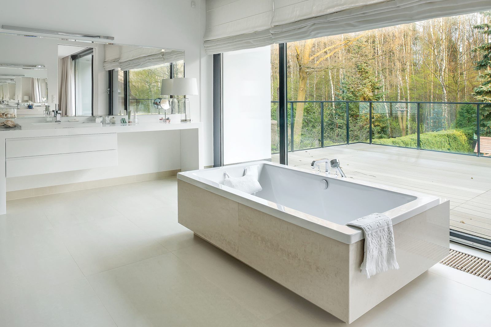 Uwielbiają tu każdy zakątek. Ich dom przypominający modernistyczny pawilon wyszedł dokładnie taki, jaki sobie wymarzyli. Niczego by w nim nie zmienili. Żałują tylko, że w podróże nie mogą zabierać łazienki – minimalistycznej, z widokiem na las. Chociaż mają dwóch synków, Stasia i Tadzia, egzamin zdaje także biała podłoga, ba, nawet puszysta śnieżna wykładzina dywanowa na piętrze, gdzie są sypialnie.