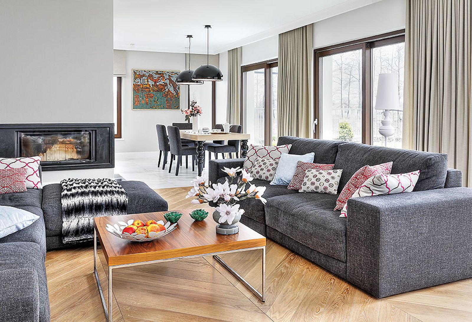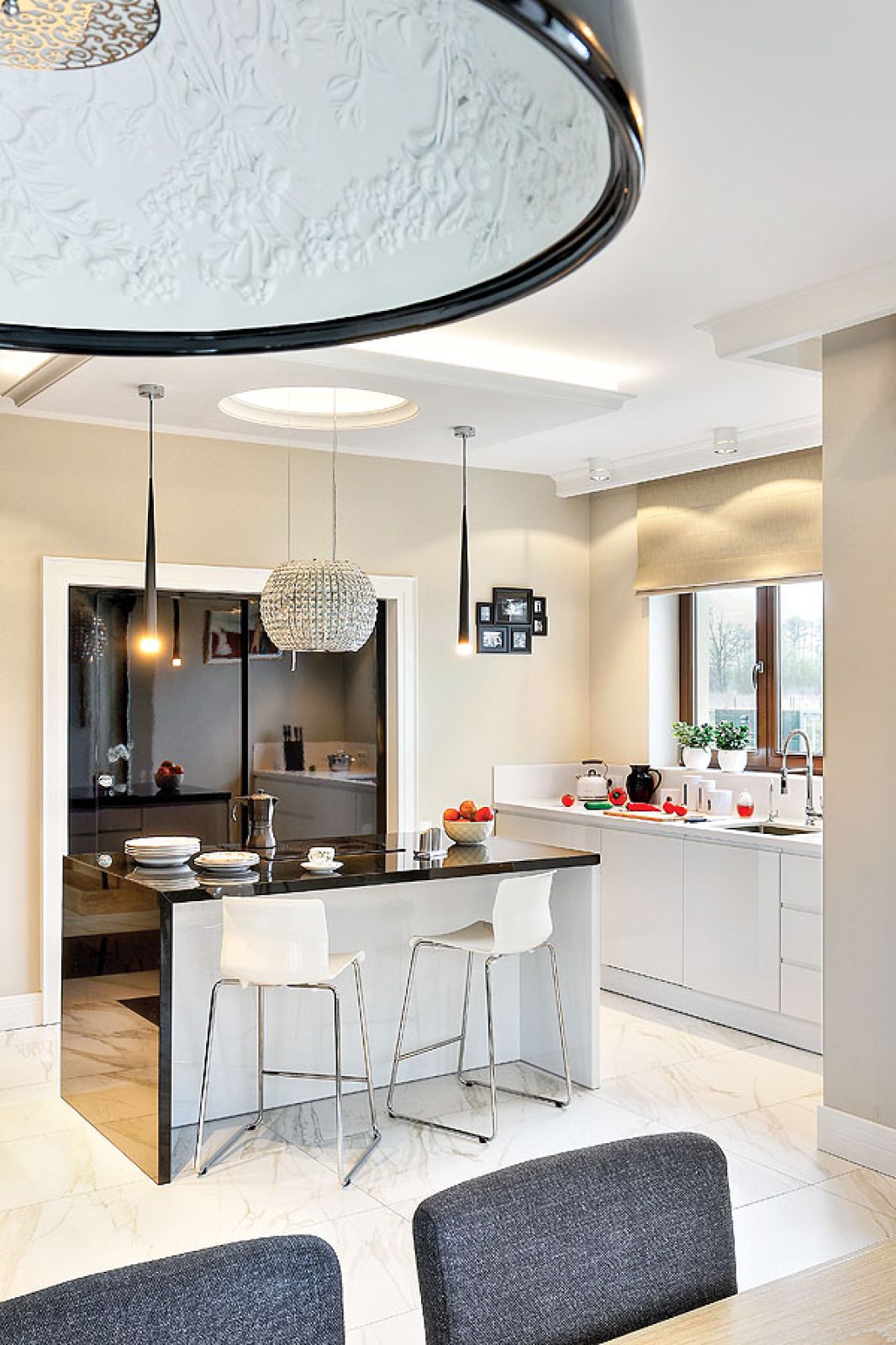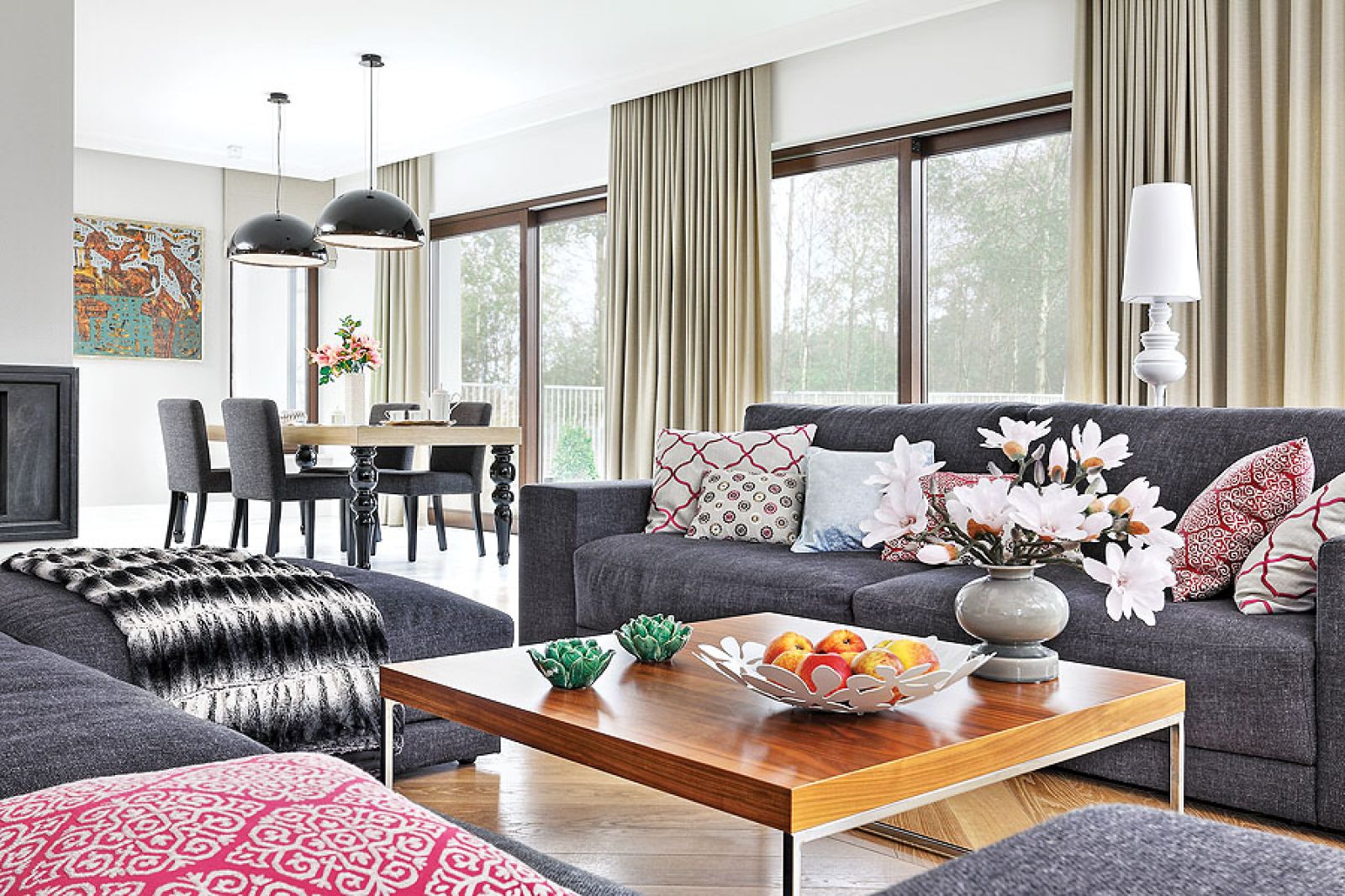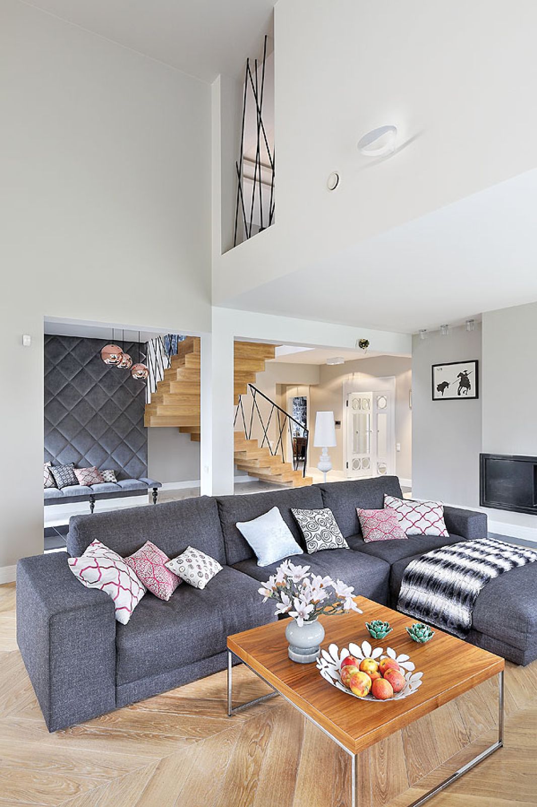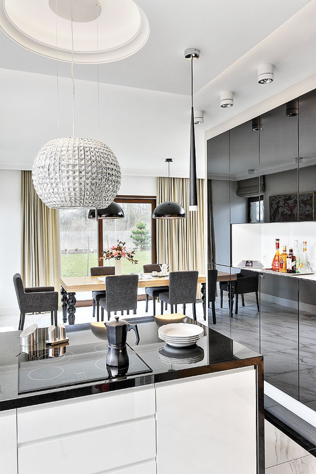 Dom pomogła wybudować projektantka Joanna Rembelska z pracowni High Level Design. Wystrój jest nowoczesny, ale, jak mówi Agnieszka, uszlachetniony art déco i nutką glamour. Najważniejszy był parter, ponieważ tu rodzina spędza większość dnia. Ogromny, 150 metrów otwartej przestrzeni, pozwala towarzyskim gospodarzom przyjmować mnóstwo gości. – Na parapetówce bawiło się ponad 50 osób i nadal było dużo miejsca – dodaje Agnieszka.