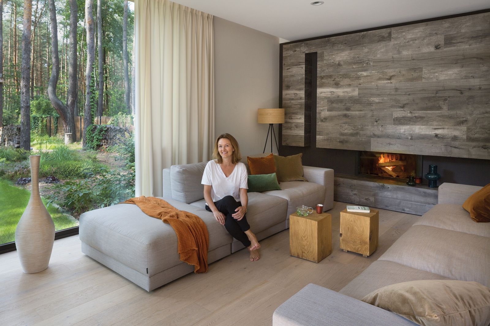 Styl nowoczesnyModrzew na elewacji i drewno w nowoczesnych wnętrzach: dębowe ściany, meble i podłogi. I trudno się dziwić, bo dom Ani i Rafała stoi w środku lasu.