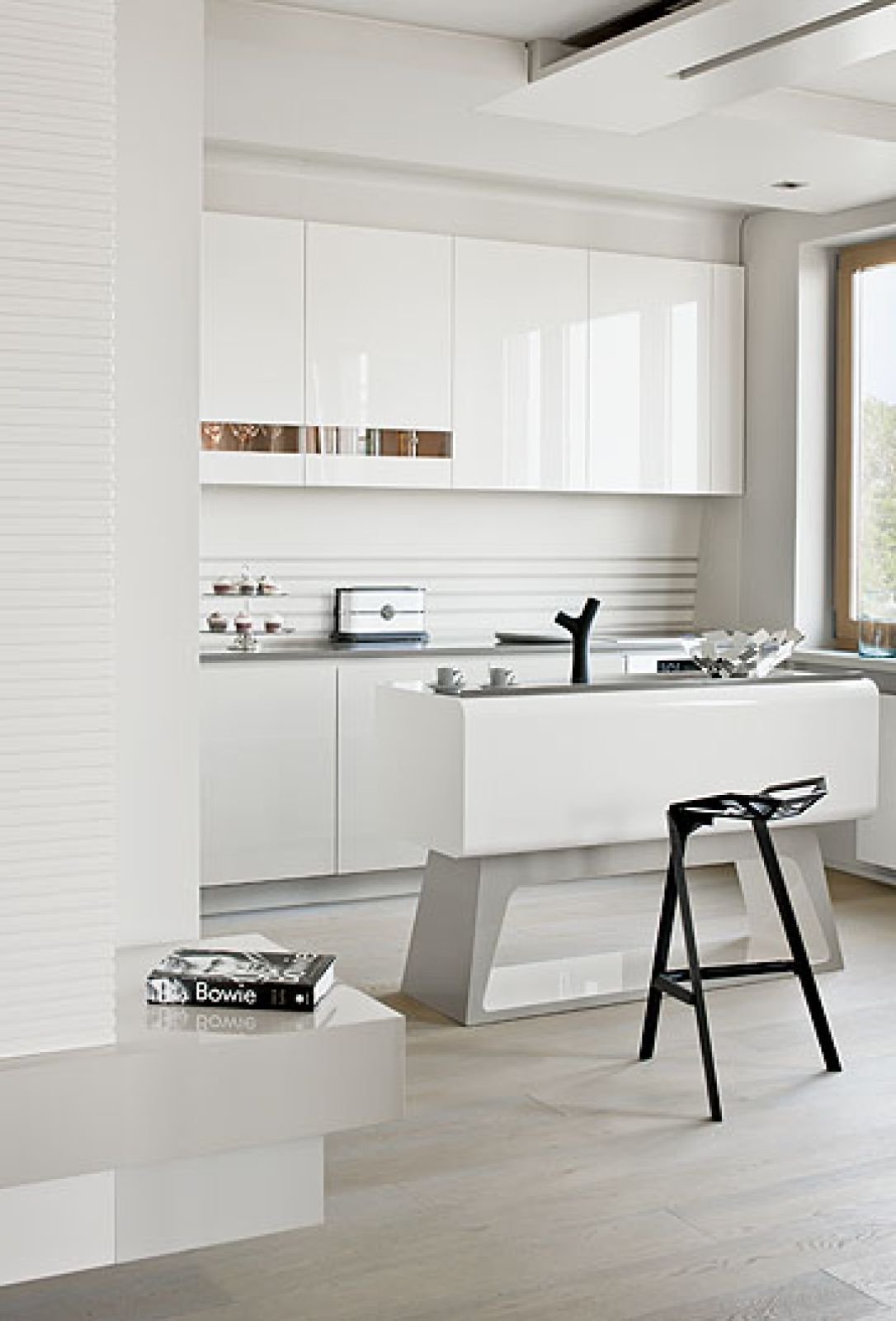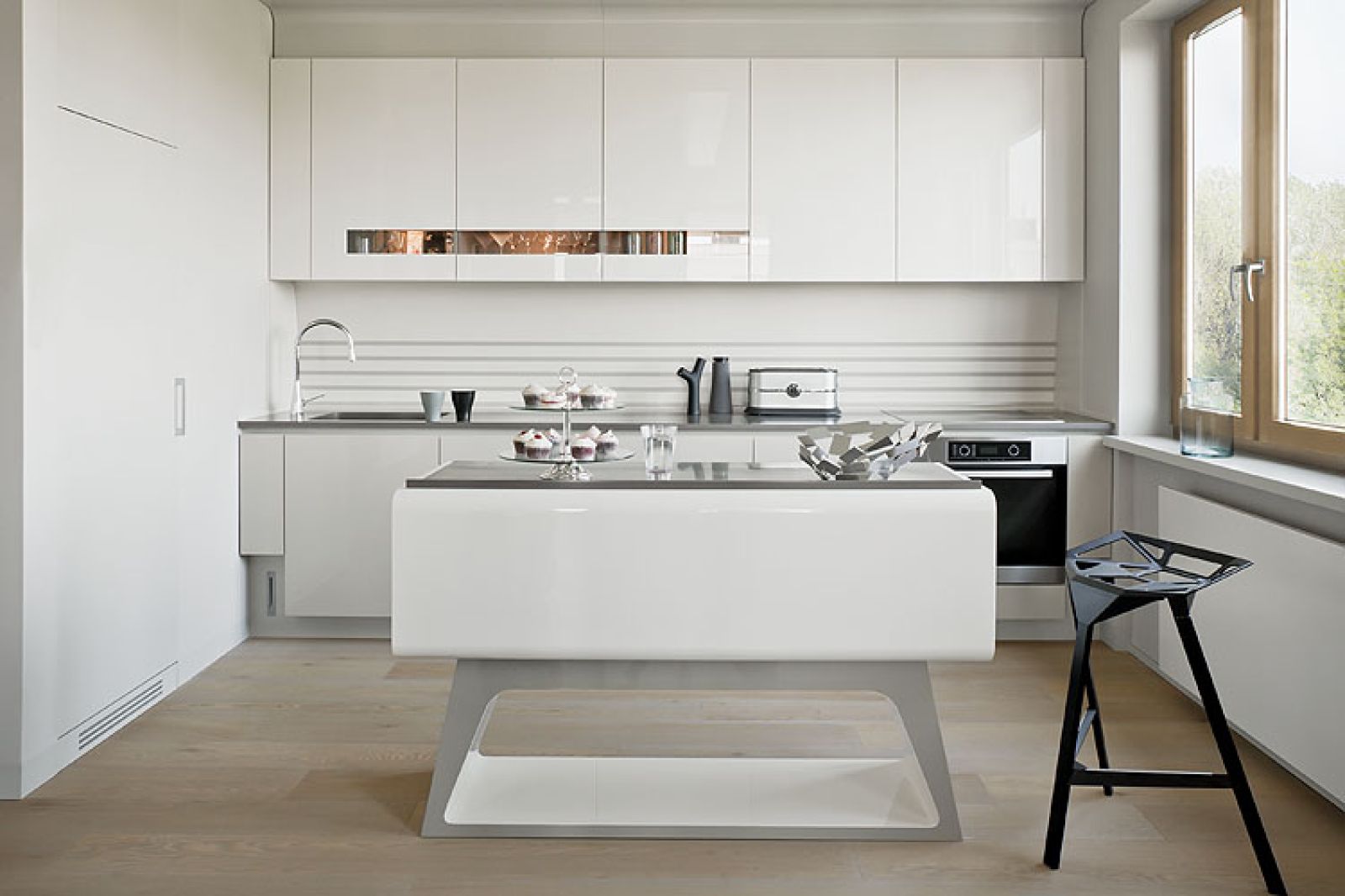 Kiedy planowała remont, w jednym z kolorowych magazynów o wnętrzach natknęła się na zdjęcia kosmicznej, błyszczącej kuchni. „To jest to!”, pomyślała i zadzwoniła do architekta. Architekta, który przyznał, że jest trochę zafiksowany na ubrania – strój klientów wyznacza jego myślenie o przyszłym projekcie. Na pierwszym spotkaniu Aleksandra zdjęła płaszcz i powiedziała: „A ubieram się tak”.