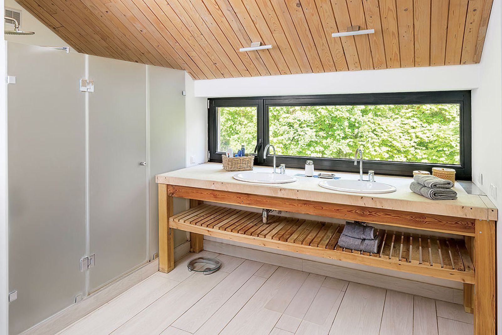 Zresztą modnego rękodzieła jest tu więcej, jak na wiejski dom przystało. – Nie pasowały mi rzeczy na wysoki połysk, nieskazitelne. Zabawne drzwi do spiżarni... uszyła krawcowa. To pasy kolorowego płótna przedzielone pośrodku supłami czarnego materiału. Dębowe deski na stole są szczotkowane, podłoga gdzieniegdzie celowo ukruszona. – Żeby cztery koty i pies mogły wszędzie chodzić i żeby goście się nie stresowali, że naniosą piachu. Żyrandol zrobiony na drutach przyjechał z Niemiec, drugi, z kolorowego filcu, uszyła Pani Jurek. Dom otacza leśny ogród urządzony przez firmę Platanus, specjalistów od naturalnej zieleni. – Chciałam, żeby pasował do lasu i okolicznych łąk, a nie kłuł w oczy tujami – mówi Paulina Kalinowska.