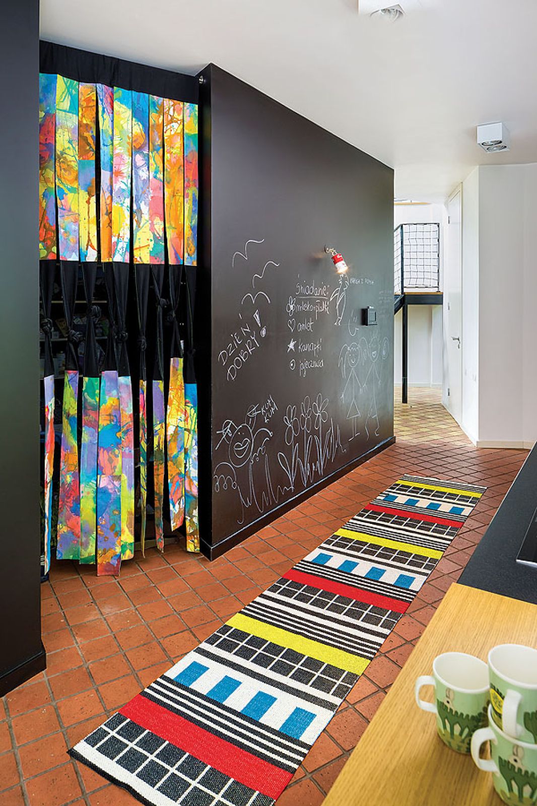Na podłogach leżą dachówki z poniemieckiej kamienicy, a większość mebli, zaprojektowanych przez Paulinę, zrobili lokalni fachowcy: stolarz i ślusarz. Chociaż wcześniej zajmowali się maszynami, zaufała im i pozwoliła eksperymentować, a to obudziło w obu ukryte talenty. – Byli pomysłowi, proponowali własne rozwiązania, mogli się wyżyć artystycznie. Ich dziełem są ławy, konsola, stół – mówi.