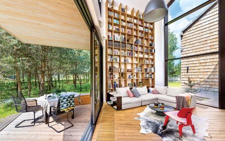 Na pierwszy rzut oka tradycji tu nie widać. Owszem, gont i drewniane deski na ścianach, ale sam kształt domu jest bardzo nowoczesny. Gdy jednak spojrzymy uważniej, pomysły Pauliny mamy jak na dłoni.
